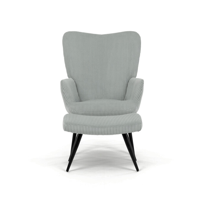Relaxačné kreslo s podnožkou v modrom manšestru ponúka pohodlné sedenie vďaka mäkkému čalúneniu a ergonomicky tvarovaným podrúčkam. Pevné čierne kovové nohy zabezpečujú stabilitu a dlhú životnosť. Manšestrová látka dodáva kreslu príjemnú textúru a vizuálnu hĺbku, ktorá sa hodí do moderných aj klasických interiérov. Súčasťou je praktický taburet na pohodlné oprenie nôh, ktorý zdieľa rovnaký dizajn a materiál. Kreslo nie je otočné ani rozkladacie, čo podčiarkuje jeho jednoduchosť a funkčnosť.