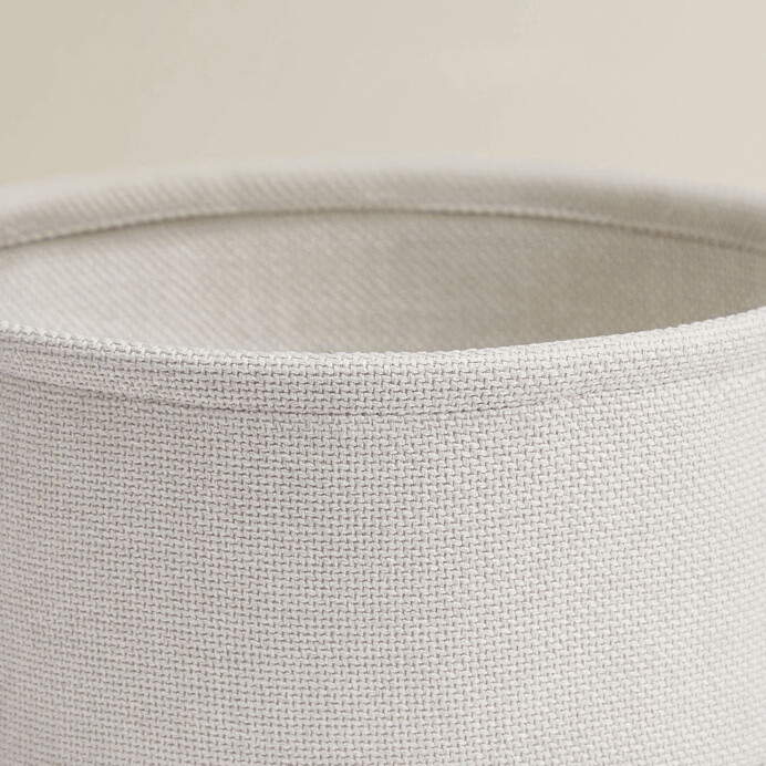 Odkladací stolík s okrúhlou doskou o priemere 45 cm a výške 50 cm ponúka praktický doplnok do obývacej izby či spálne. Doska je vyrobená z MDF s kašmírovým dekorom v béžovom odtieni, ktorý pôsobí jemne a neutrálne. Pod doskou sa nachádza textilný kôš v krémovej farbe, ktorý poskytuje priestor na uloženie drobných predmetov a pomáha udržať poriadok. Kovové nohy v béžovom prevedení zabezpečujú stabilitu a pevnosť stolíka. Celkový dizajn kombinuje funkčnosť s nenápadným moderným štýlom vhodným do rôznych interiérov.