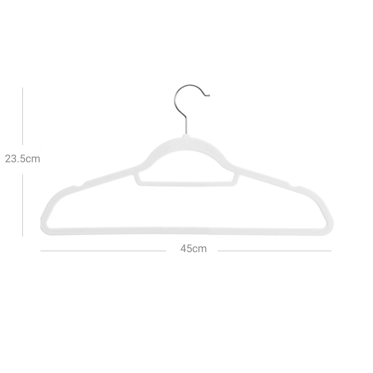Sada 50 zamatových vešiakov je praktickým doplnkom do každej šatníkovej skrine, kde je dôraz na prehľadnosť a starostlivosť o oblečenie. Tenký profil šetrí miesto a umožňuje efektívnu organizáciu priestoru aj v menších šatníkoch. Protišmykový zamatový povrch zabraňuje skĺzavaniu blúzok, košieľ či šiat, zatiaľ čo zárezy spoľahlivo udržia modely s úzkymi ramienkami. Otočný kovový háčik zabezpečuje jednoduchú manipuláciu. Tento produkt značky Autronic je ideálnou voľbou pre moderné a funkčné úložné riešenie do domácnosti aj showroomu.