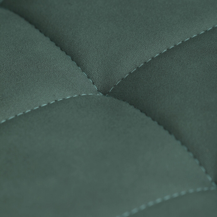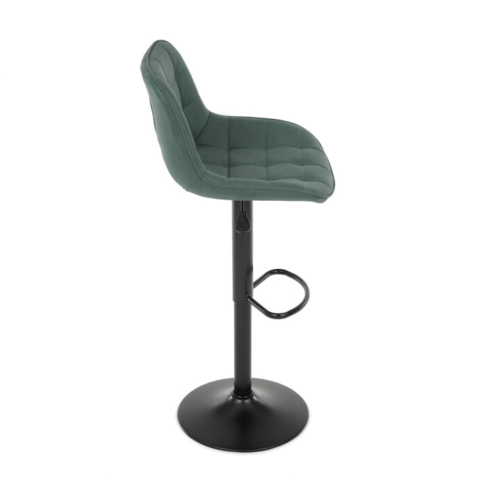 Barová stolička AUB-V3066 GRN3 kombinuje moderný dizajn s praktickými funkciami pre pohodlné sedenie pri barovom pulte. Sedák aj operadlo sú potiahnuté zelenou látkou v dekore brúseného kože, ktorá ponúka príjemnú textúru a jednoduchú údržbu. Dizajnové prešívanie dodáva stoličke výrazný vizuálny efekt a zároveň zvyšuje komfort vďaka lepšiemu tvarovaniu sedáka. Stabilná podnož z čierneho kovu je vybavená otočným mechanizmom a plynulým nastavením výšky, čo umožňuje prispôsobenie podľa potreby používateľa. Praktický oporný kruh poskytuje pohodlnú oporu nôh, zatiaľ čo celková konštrukcia je navrhnutá pre dlhú životnosť a stabilitu.