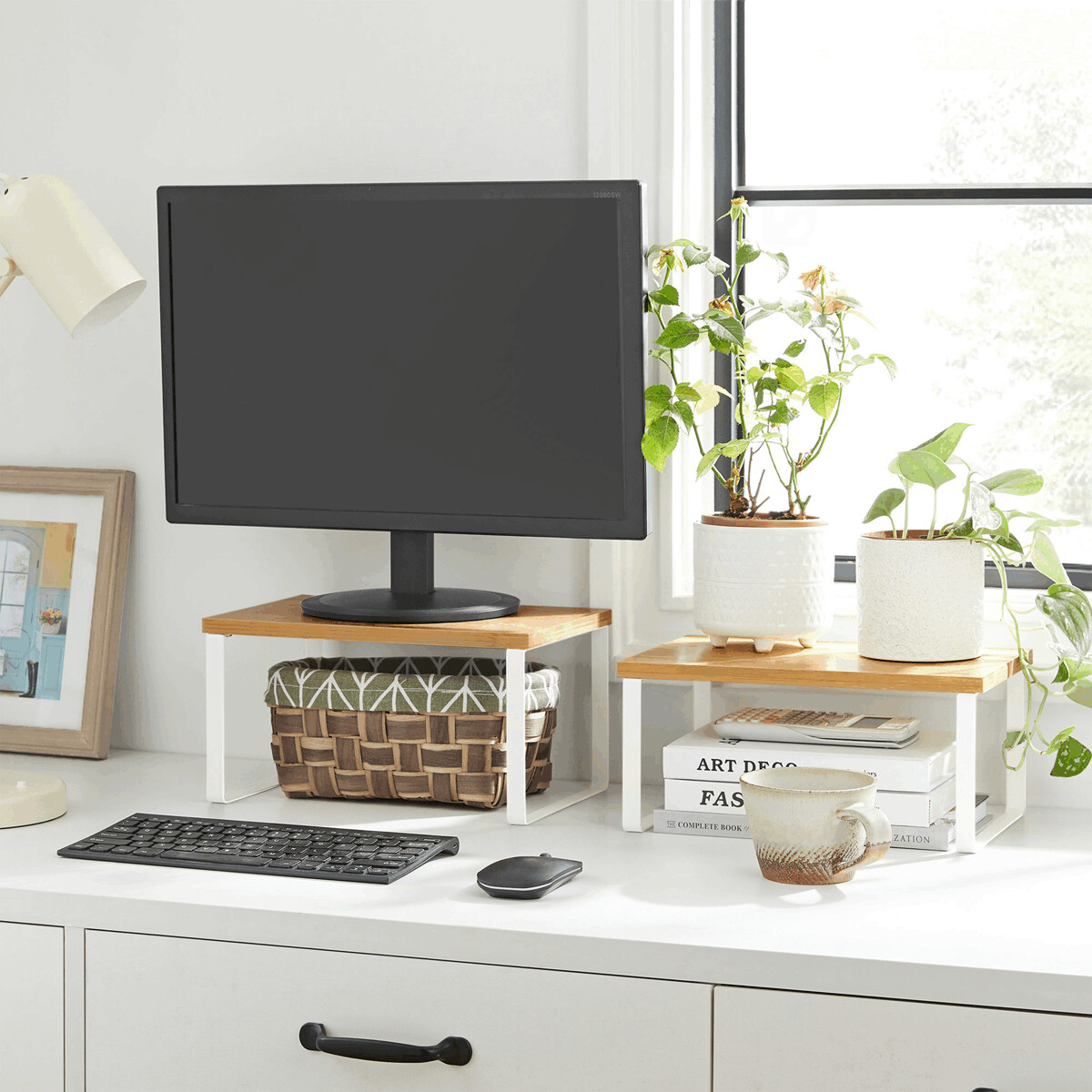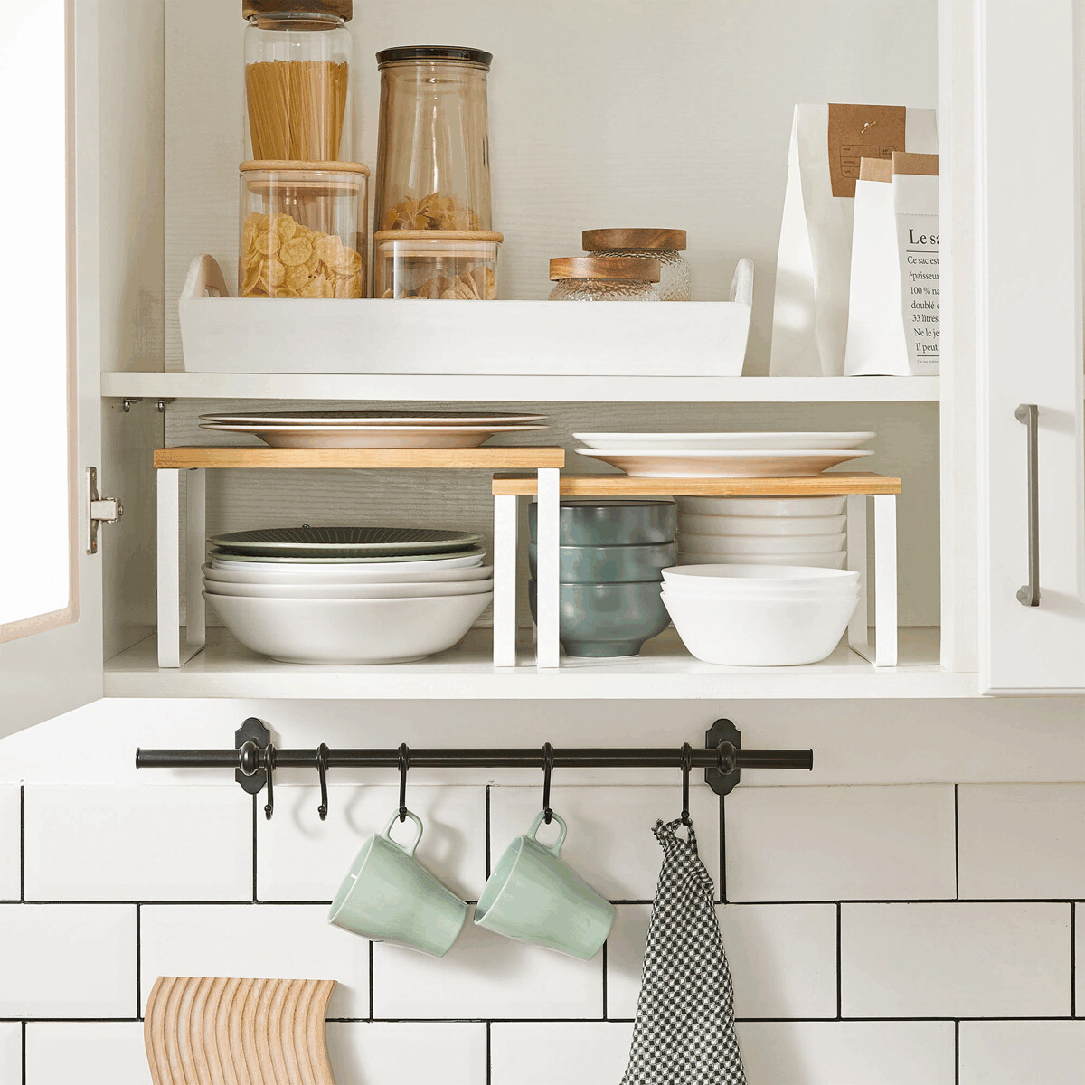 Set kuchynských poličiek kombinuje prírodné bambusové dosky s bielymi kovovými rámami, ktoré zabezpečujú stabilitu a moderný vzhľad. Poličky ponúkajú dva odkladacie priestory vhodné na usporiadanie kuchynských doplnkov, korenín alebo menšieho riadu. Bambusové dosky sú hladké s jemnou textúrou, ktorá prináša do priestoru prírodnú atmosféru a jednoduchú údržbu. Biely kovový rám je lakovaný práškovou metódou, čo zvyšuje jeho odolnosť voči opotrebeniu. Vďaka kompaktným rozmerom je tento set ideálny na využitie v menších kuchyniach alebo ako doplnok na pracovnú dosku.