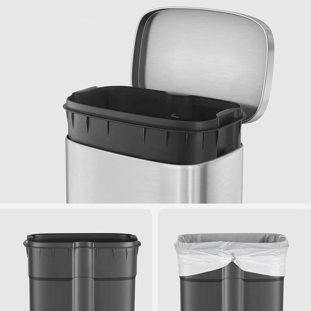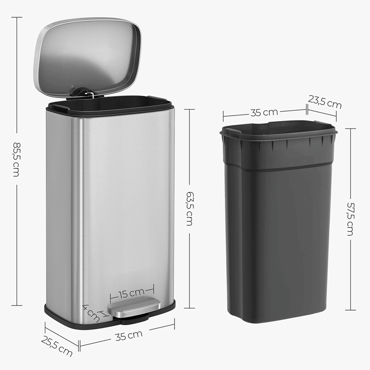Odpadkový kôš s objemom 30 litrov je vyrobený z nerezového kovu v elegantnom striebornom prevedení, ktoré ľahko zapadne do moderných aj klasických interiérov. Praktický pedál umožňuje hygienické otváranie veka bez použitia rúk, čo zvyšuje komfort a čistotu pri používaní. Kôš má stabilnú základňu s protišmykovou úpravou, ktorá zabezpečuje pevné postavenie na podlahe. Jeho hladký povrch sa ľahko udržiava a odoláva bežnému opotrebovaniu, čo prispieva k dlhej životnosti produktu.