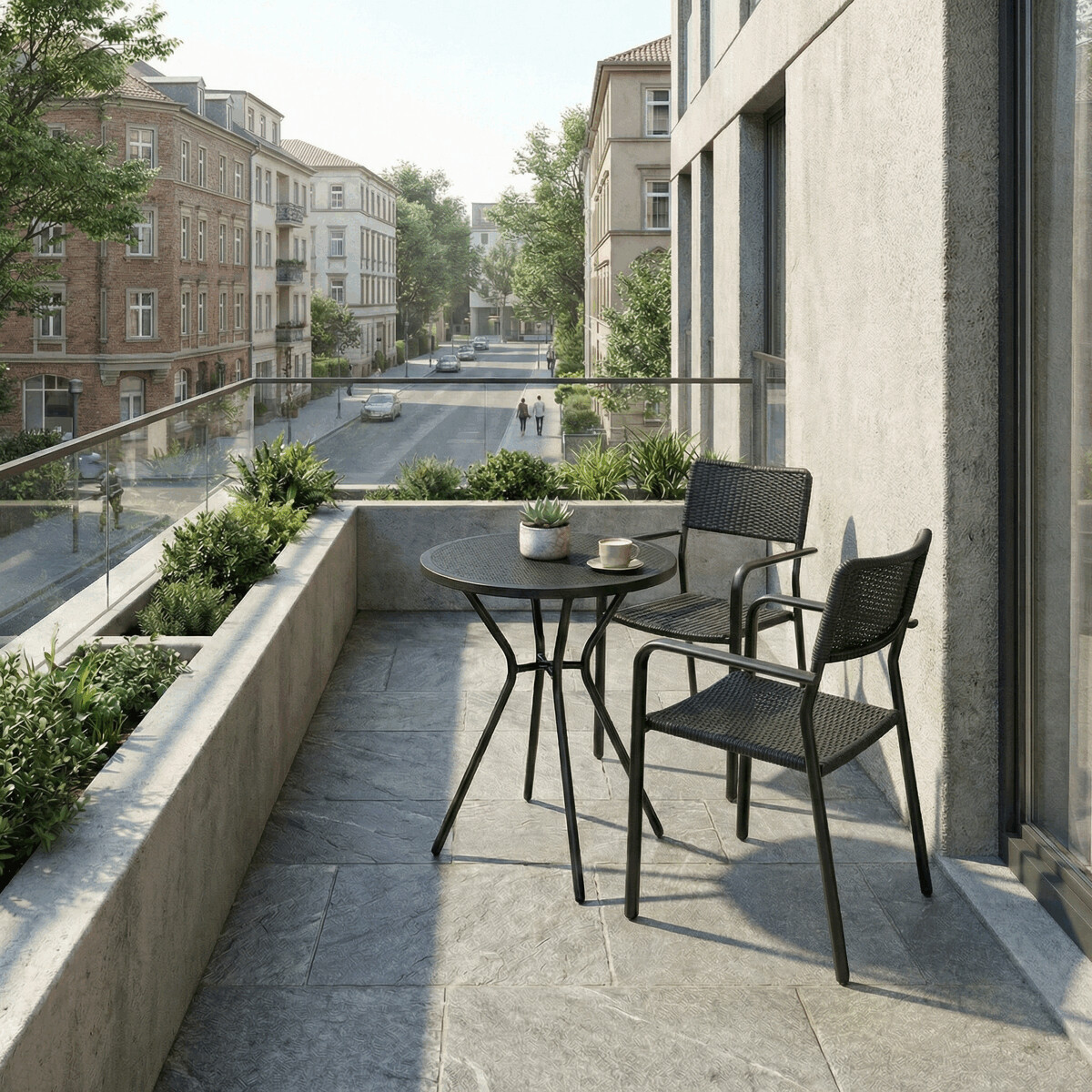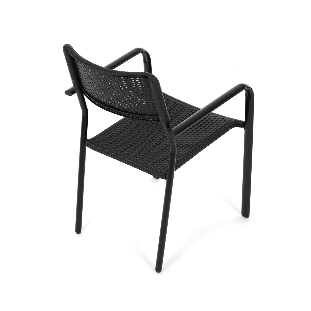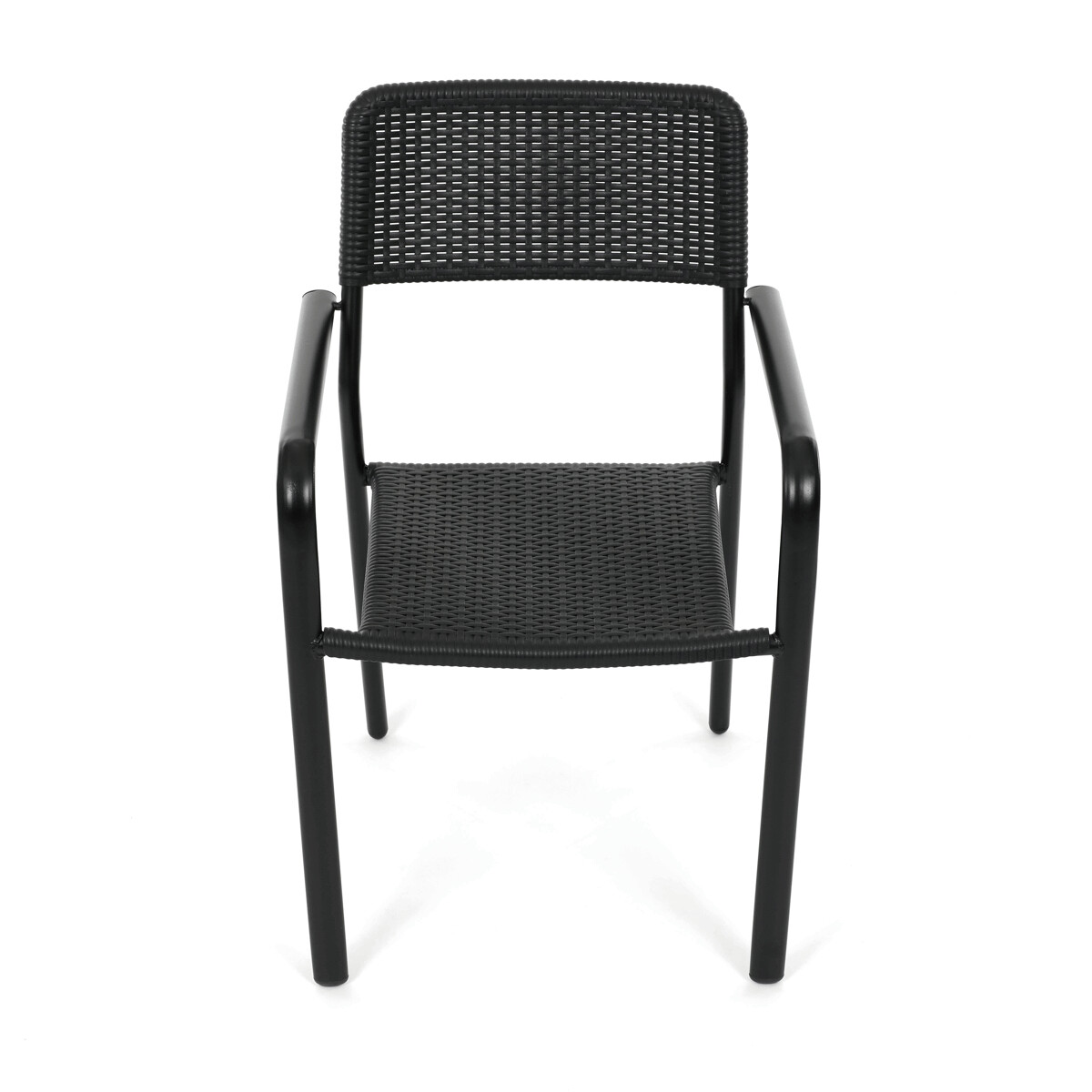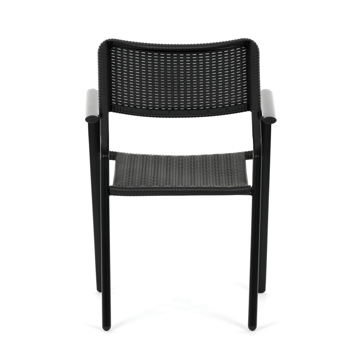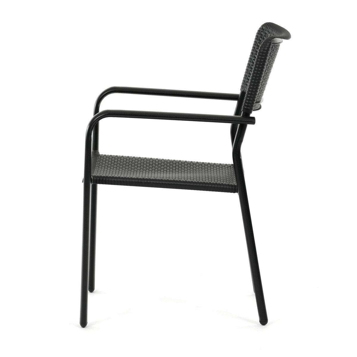 Záhradná stolička v čiernom prevedení kombinuje pevný kovový rám s odolným plastovým sedákom a operadlom, ktoré sú navrhnuté pre dlhú životnosť a jednoduchú údržbu. Vďaka stohovateľnému dizajnu umožňuje efektívne skladovanie a úsporu miesta. Podrúčky zabezpečujú pohodlné opretie rúk počas sedenia. Jednoduchý a praktický tvar stoličky sa hodí do rôznych vonkajších priestorov, ako sú terasy, záhrady alebo balkóny.