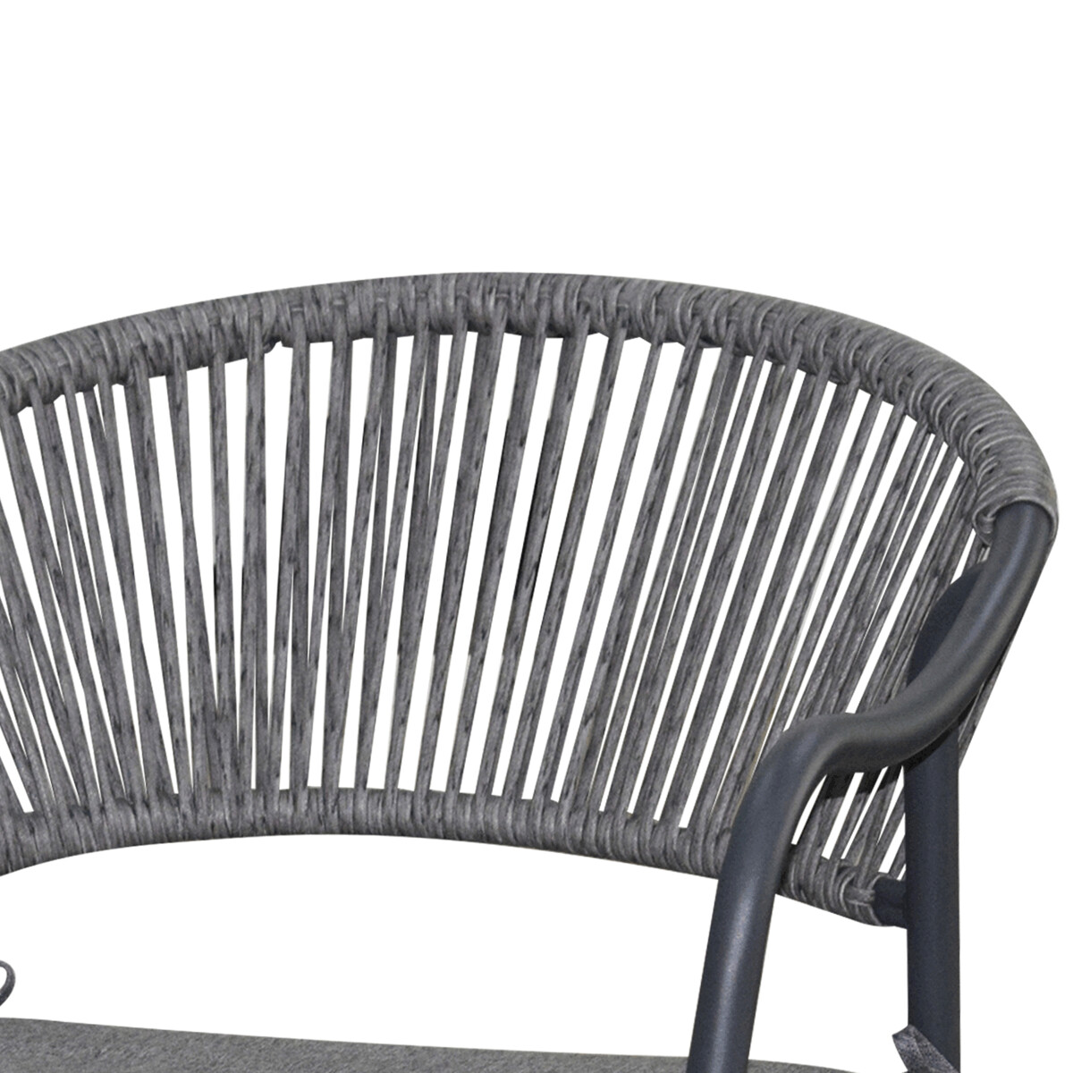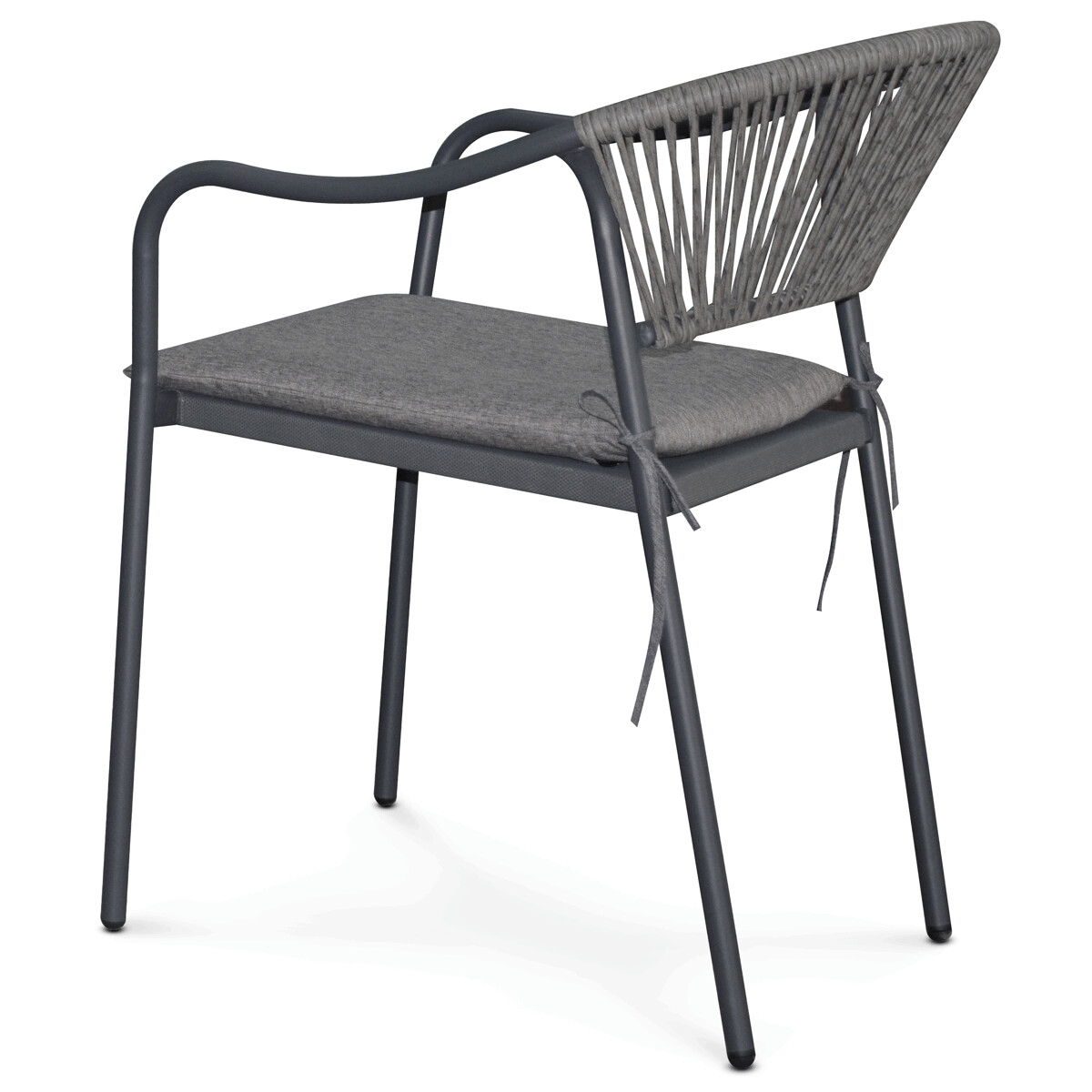 Záhradná stolička v sivom prevedení kombinuje pevný kovový rám s odolným polyratanom, ktorý tvorí elegantné operadlo v charakteristickom prepletenom vzore. Polstrovaný sedák zabezpečuje pohodlie pri sedení, zatiaľ čo podrúčky nadväzujú na ergonomický tvar stoličky pre lepšiu oporu paží. Vďaka stohovateľnosti je stolička praktická na úsporu miesta pri uskladnení alebo preprave. Nadčasový dizajn a neutrálna sivá farba umožňujú jednoduché začlenenie do rôznych záhradných aranžmán. Provedenie je navrhnuté pre dlhú životnosť a stabilitu, čo oceníte pri každodennom vonkajšom používaní.
