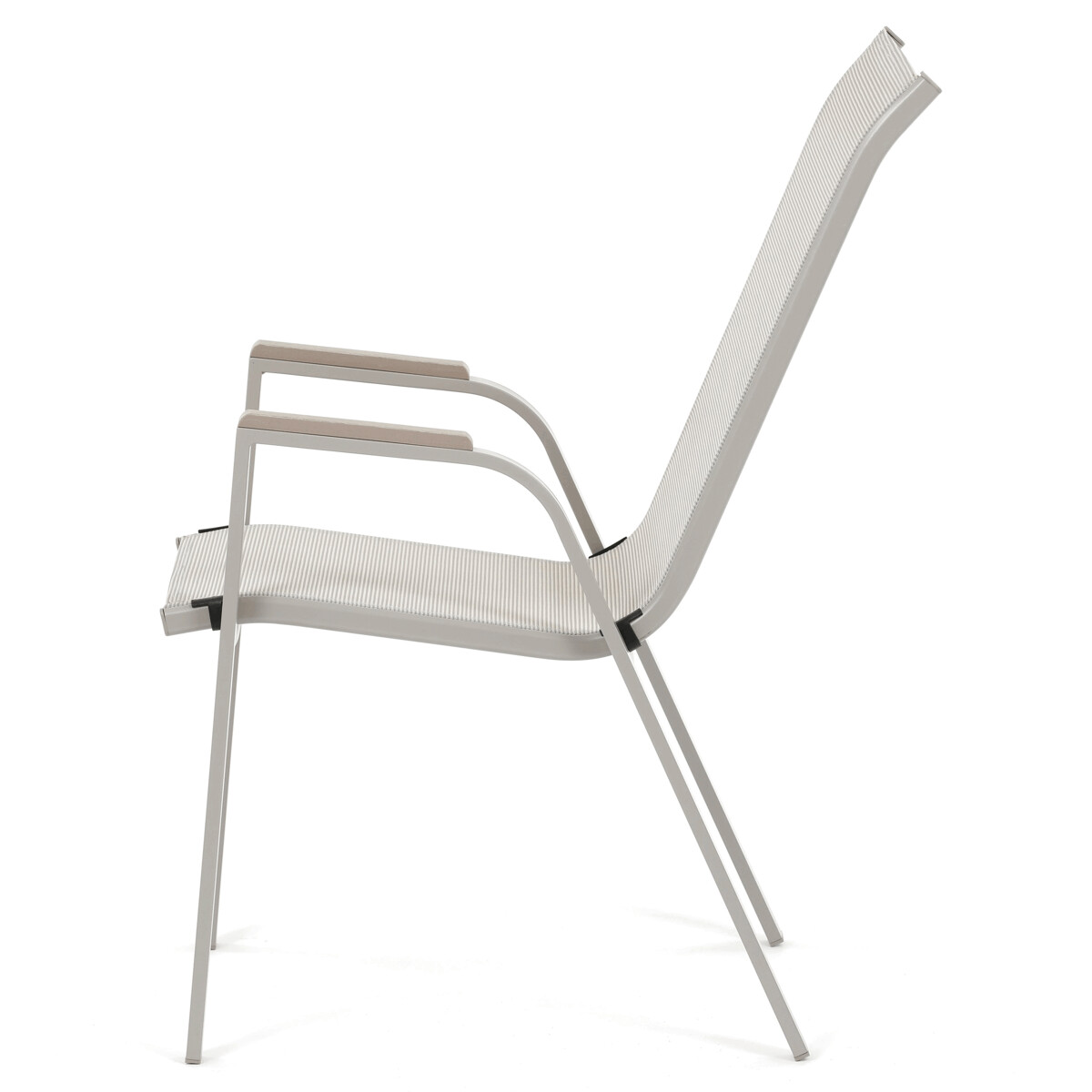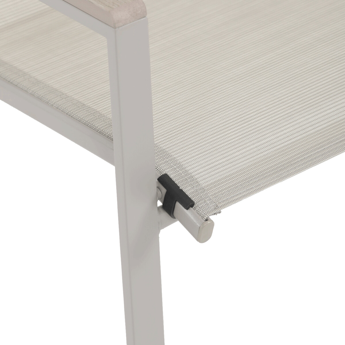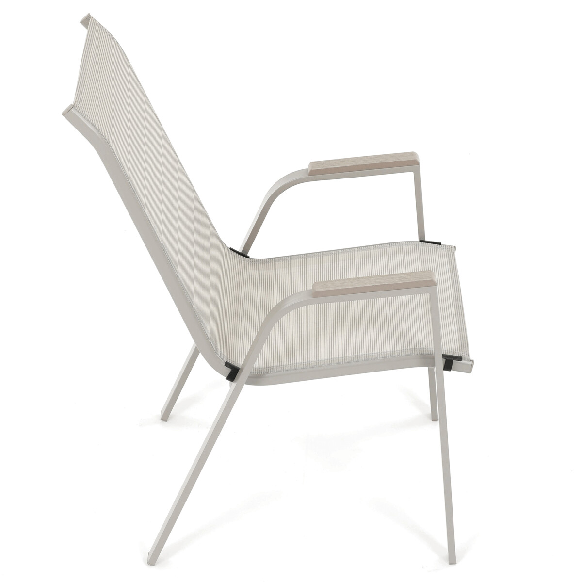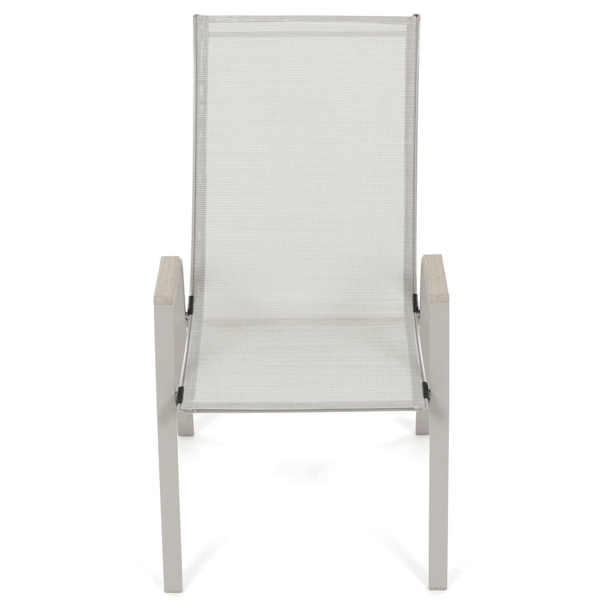 Záhradná stolička v béžovom prevedení kombinuje pevný rám s polywoodovými podrúčkami v dekore duba, ktoré dodávajú prírodný vzhľad a jednoduchú údržbu. Sedák a operadlo sú potiahnuté odolnou sieťovinou, ktorá je príjemná na dotyk a umožňuje pohodlné sedenie aj počas teplých dní vďaka svojej priedušnosti. Konštrukcia stoličky je navrhnutá tak, aby bola stohovateľná, čo uľahčuje jej skladovanie a manipuláciu. Stabilná kovová podnož zaisťuje bezpečné a pevné opretie na rôznych povrchoch. Vďaka kombinácii materiálov a dizajnu je stolička vhodná na vonkajšie použitie na terasách, záhradách či balkónoch.