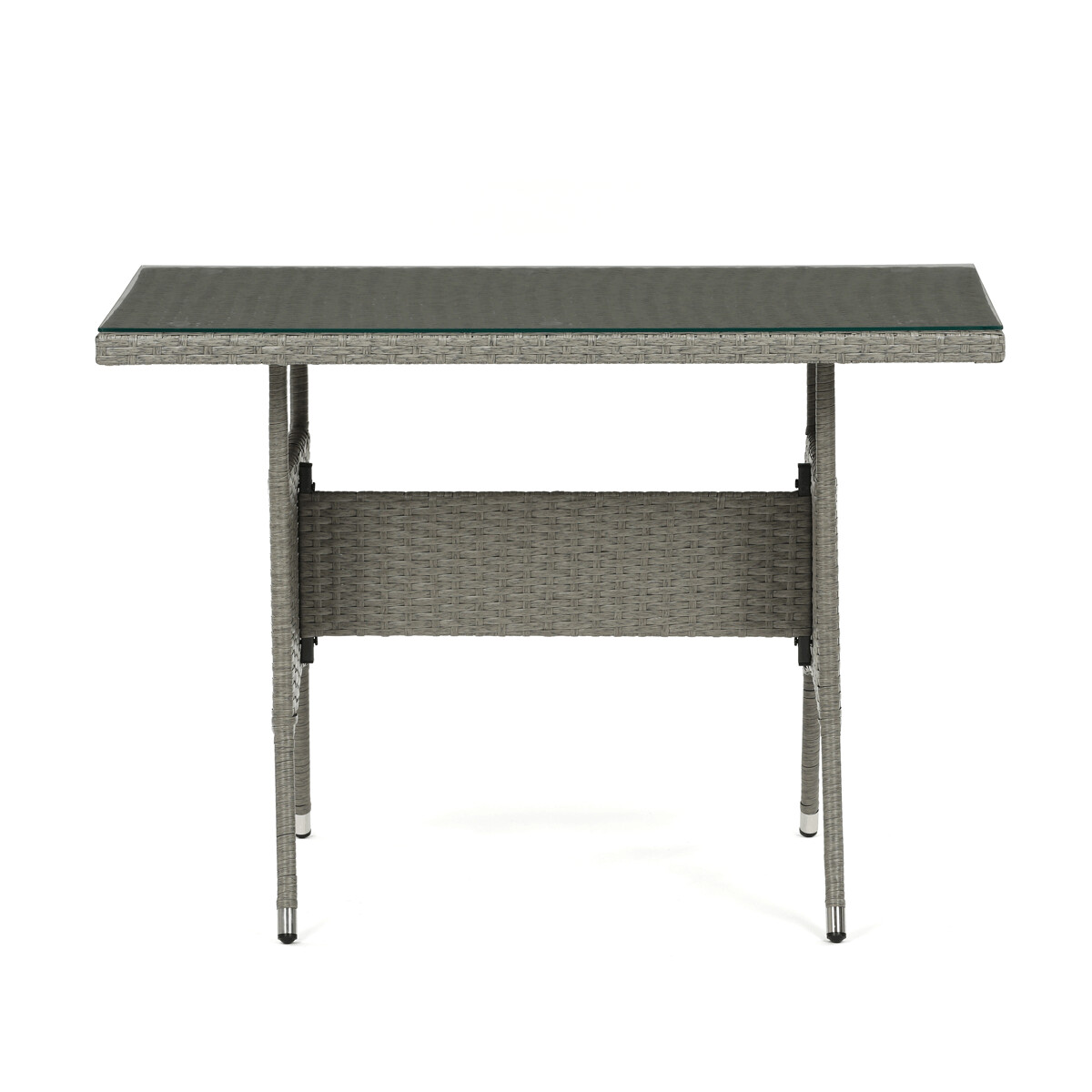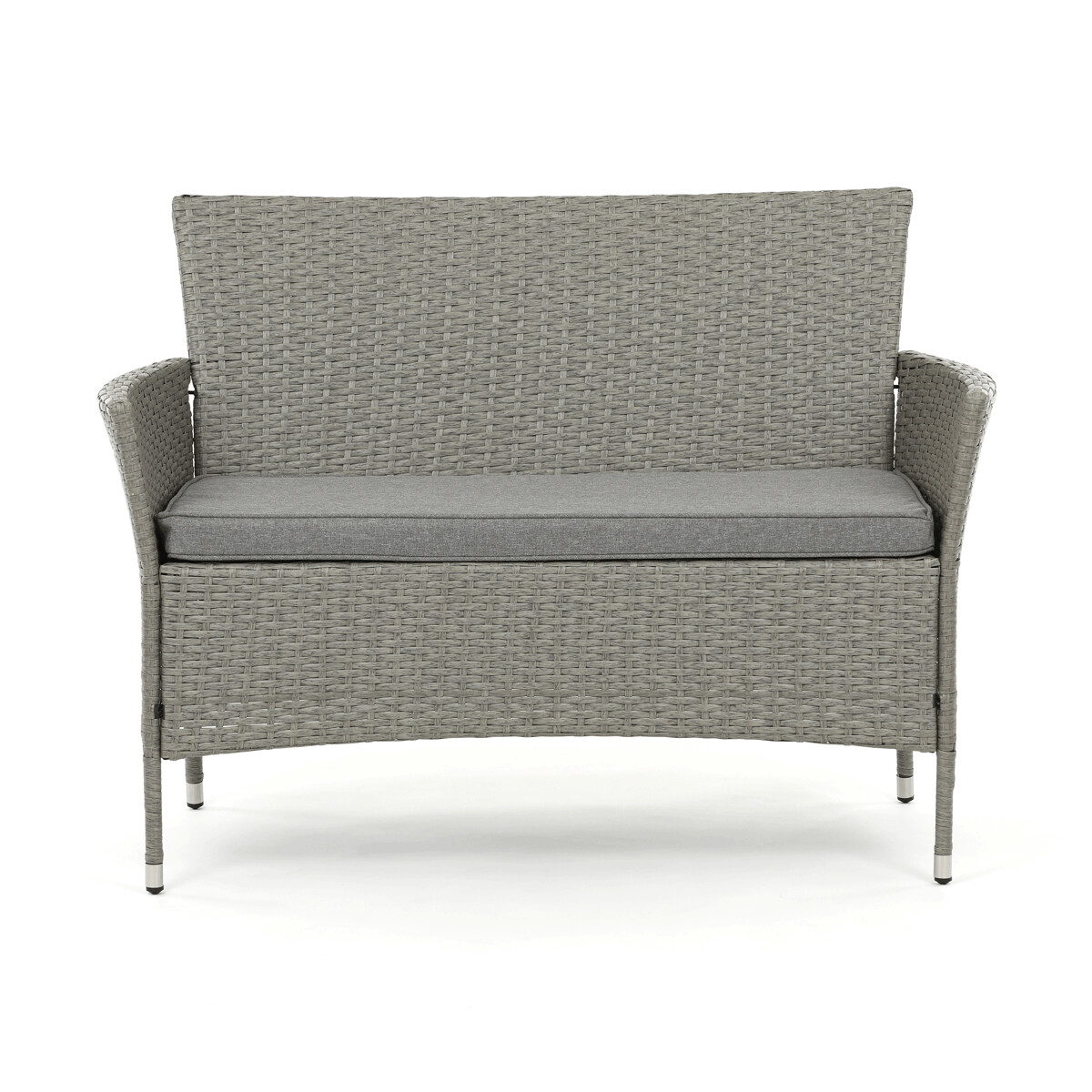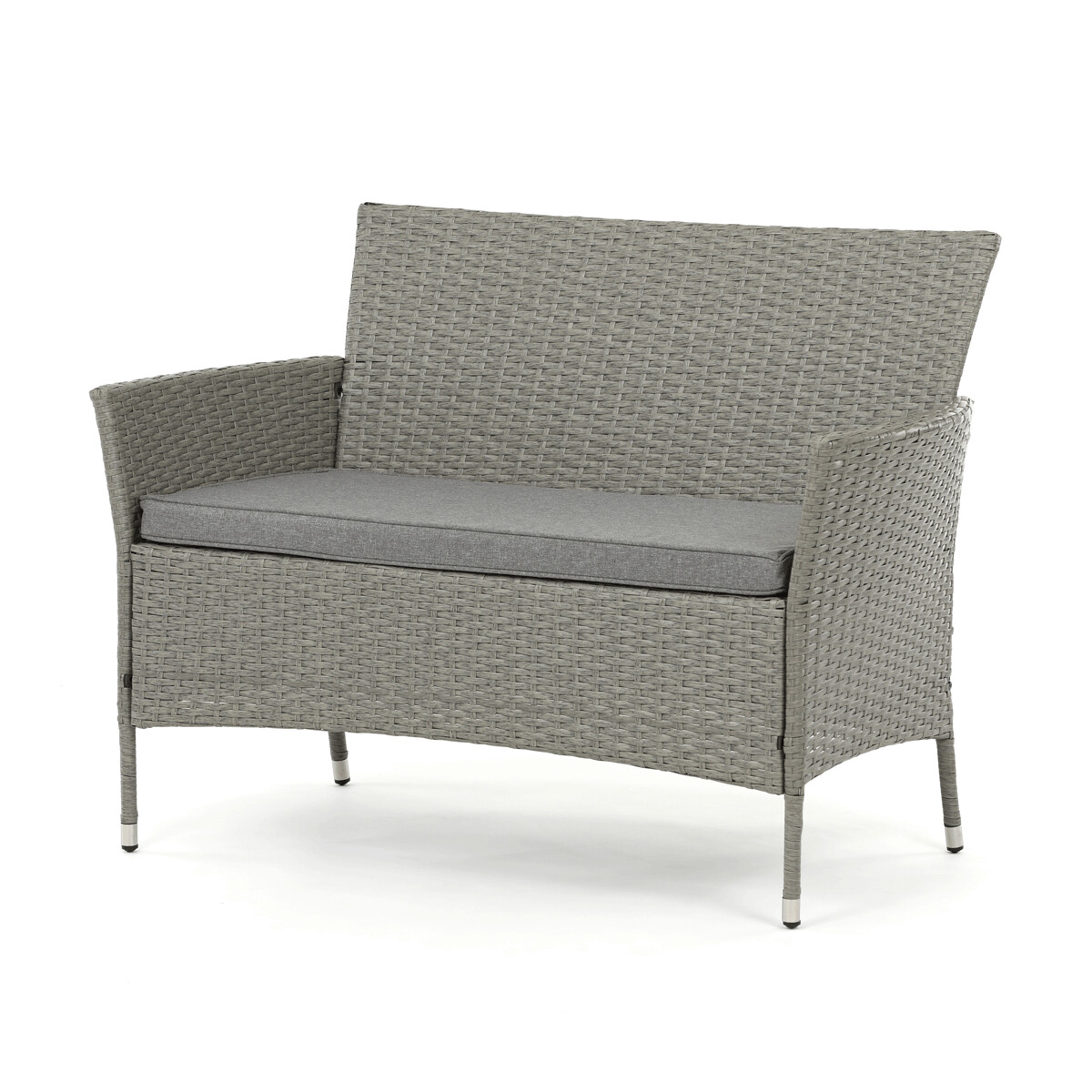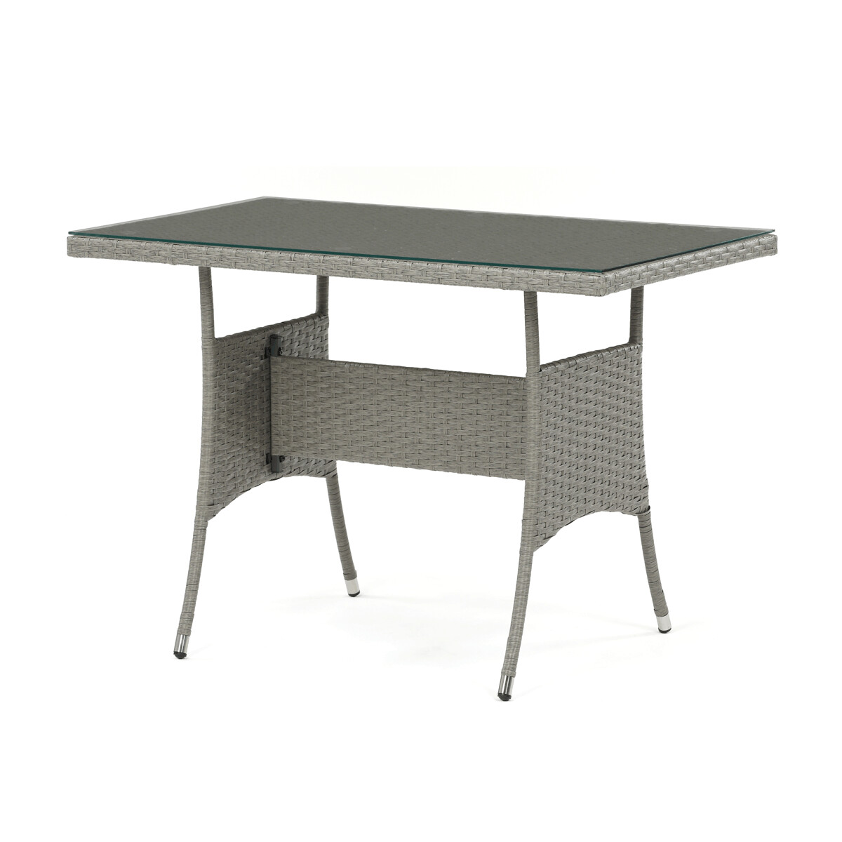 Záhradná zostava s jedálenským stolom je vyrobená z odolného polyratanu v sivom odtieni, ktorý verne napodobňuje prírodný ratan a je vhodný na vonkajšie použitie. Pevná kovová kostra zabezpečuje stabilitu a dlhú životnosť celej zostavy, zatiaľ čo doska stola z tvrdeného skla prináša jednoduchú údržbu a elegantný vzhľad. Súčasťou sú pohodlné polstrované sedáky potiahnuté sivou látkou, ktoré zvyšujú komfort pri sedení. Zostava obsahuje jeden jedálenský stôl, dvojmiestnu lavicu a dve samostatné kreslá, čo umožňuje pohodlné posedenie až pre päť osôb. Vďaka kombinácii kvalitných materiálov a premyslenému dizajnu je táto záhradná zostava ideálnou voľbou na relax aj spoločenské stretnutia na záhrade či terase.