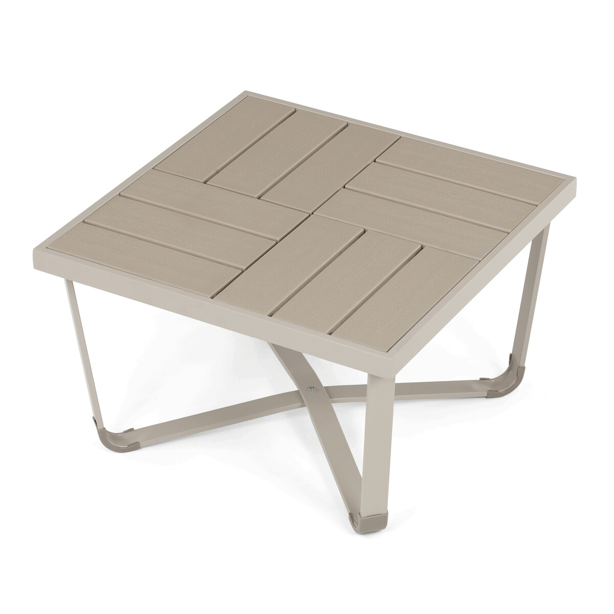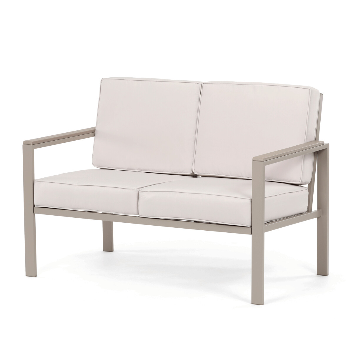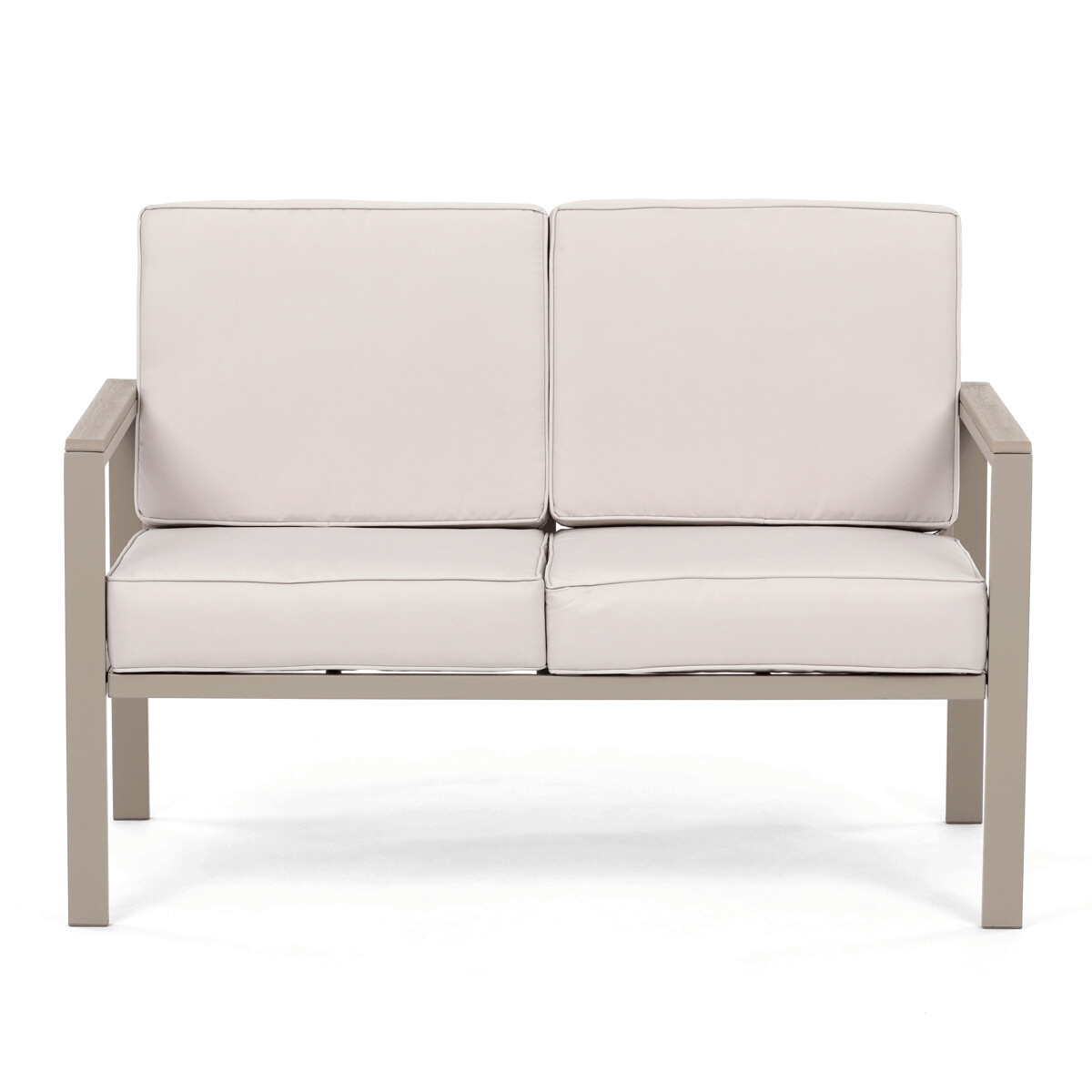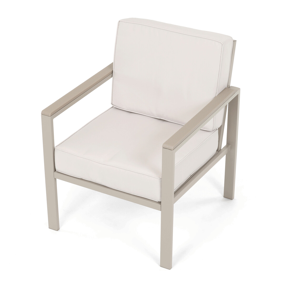 Záhradná zostava v béžovom prevedení kombinuje pevný kovový rám s pohodlnými sedákmi potiahnutými odolnou látkou v béžovej farbe. Dosky stolíka aj podrúčky sú vyrobené z polywoodu, materiálu známeho svojou vysokou odolnosťou voči poveternostným vplyvom a ľahkou údržbou. Konštrukcia zostavy je navrhnutá tak, aby poskytovala stabilitu a komfort pri vonkajšom posedení, pričom polstrovanie zabezpečuje pohodlné sedenie aj počas dlhšieho používania. Súčasťou sú dve samostatné kreslá a dvojmiestna pohovka, ktoré spolu s praktickým stolíkom vytvárajú ideálny priestor na relaxáciu na záhrade či terase. Celkový dizajn je jednoduchý a moderný, vhodný pre rôzne vonkajšie priestory.