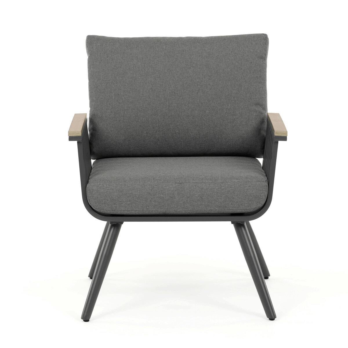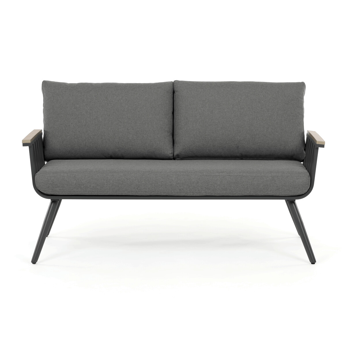 Záhradná zostava v sivom prevedení kombinuje pevný hliníkový rám s odolnými polywoodovými prvkami v dekore divokého dubu, ktoré zabezpečujú dlhú životnosť aj pri vonkajšom použití. Súčasťou zostavy sú pohodlné kreslá a dvojmiestna lavica s polstrovaním v neutrálnej sivej farbe, ktoré podporujú komfort počas oddychu. Doska stola je vyrobená z bezpečnostného skla, ktoré sa ľahko udržiava a dopĺňa moderný vzhľad celej zostavy. Konštrukcia nábytku je navrhnutá pre stabilitu a odolnosť voči poveternostným vplyvom, čo umožňuje využitie na terase, záhrade či balkóne. Vďaka kombinácii materiálov a dizajnu sa set hodí do rôznych vonkajších priestorov, kde poskytuje praktické aj estetické riešenie na posedenie.