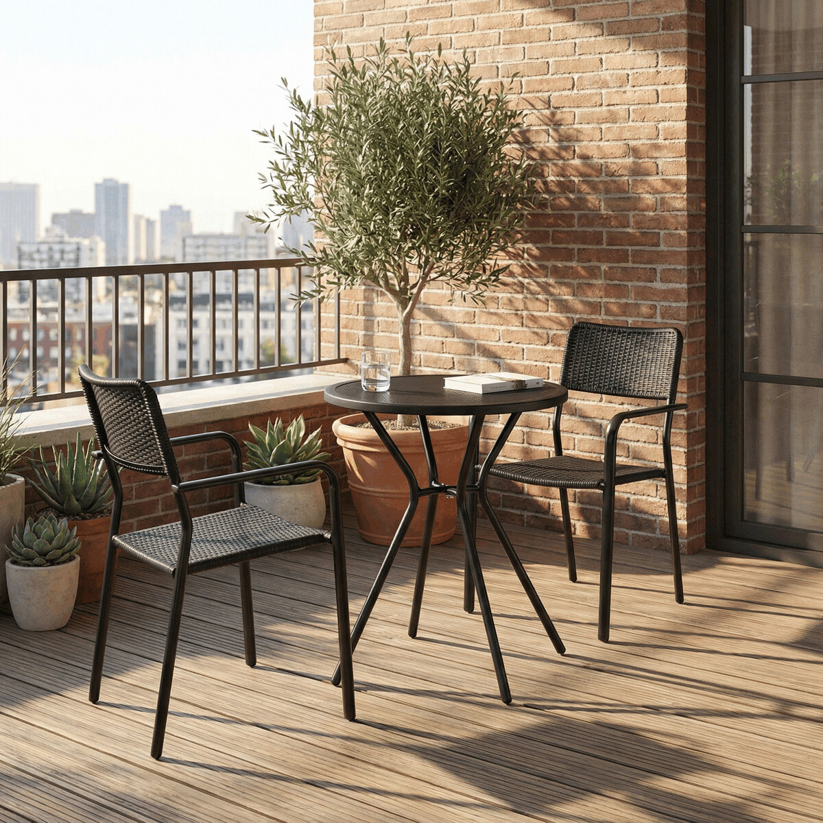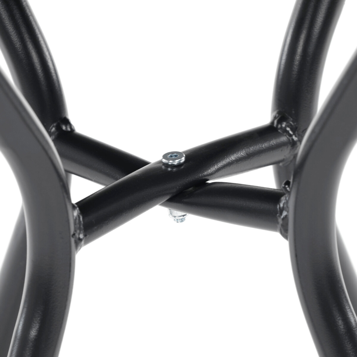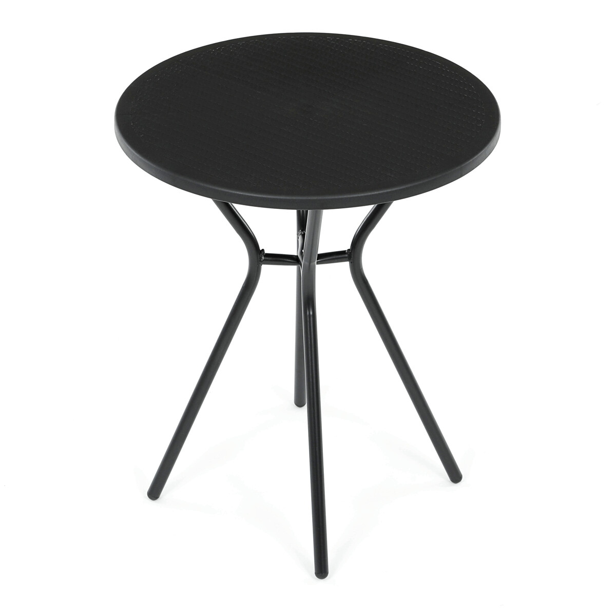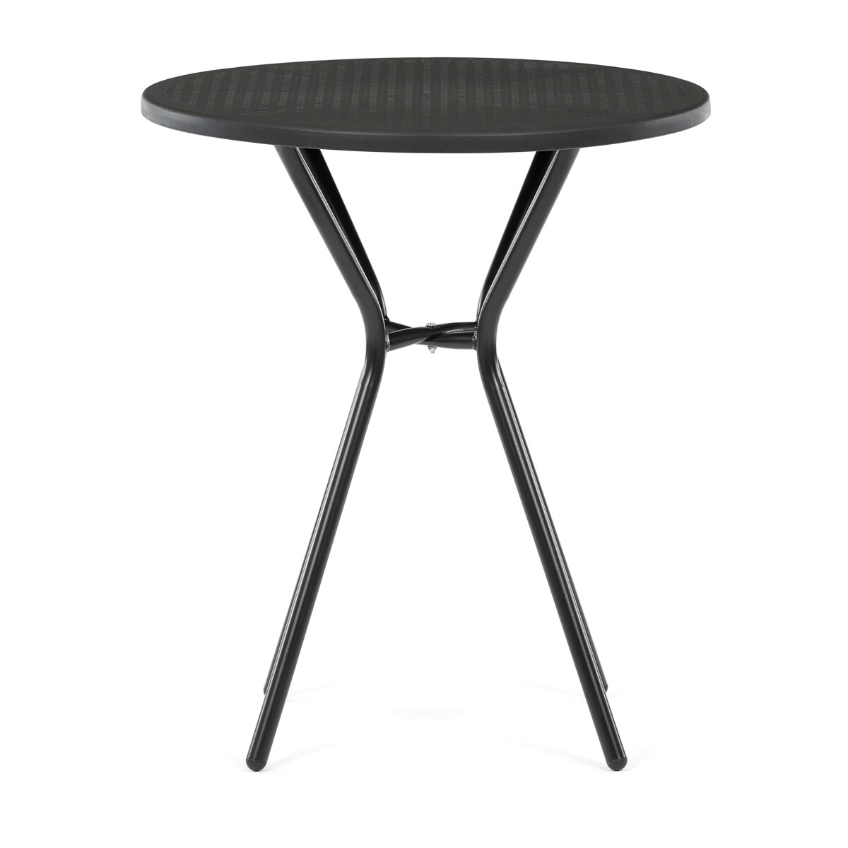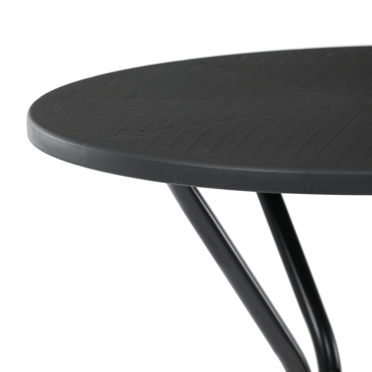 Záhradný stôl s čiernou plastovou doskou a stabilnou kovovou podnožou ponúka praktické riešenie pre vonkajšie posedenie. Okrúhly tvar dosky s jemnou textúrou zabezpečuje jednoduchú údržbu a odolnosť voči poveternostným vplyvom. Kovová podnož je opatrená práškovým lakom, ktorý chráni proti korózii a zvyšuje životnosť stola. Vďaka pevnej konštrukcii stôl poskytuje stabilnú oporu pre rôzne aktivity na záhrade či terase. Kompaktné rozmery umožňujú jednoduché umiestnenie aj v menších priestoroch.