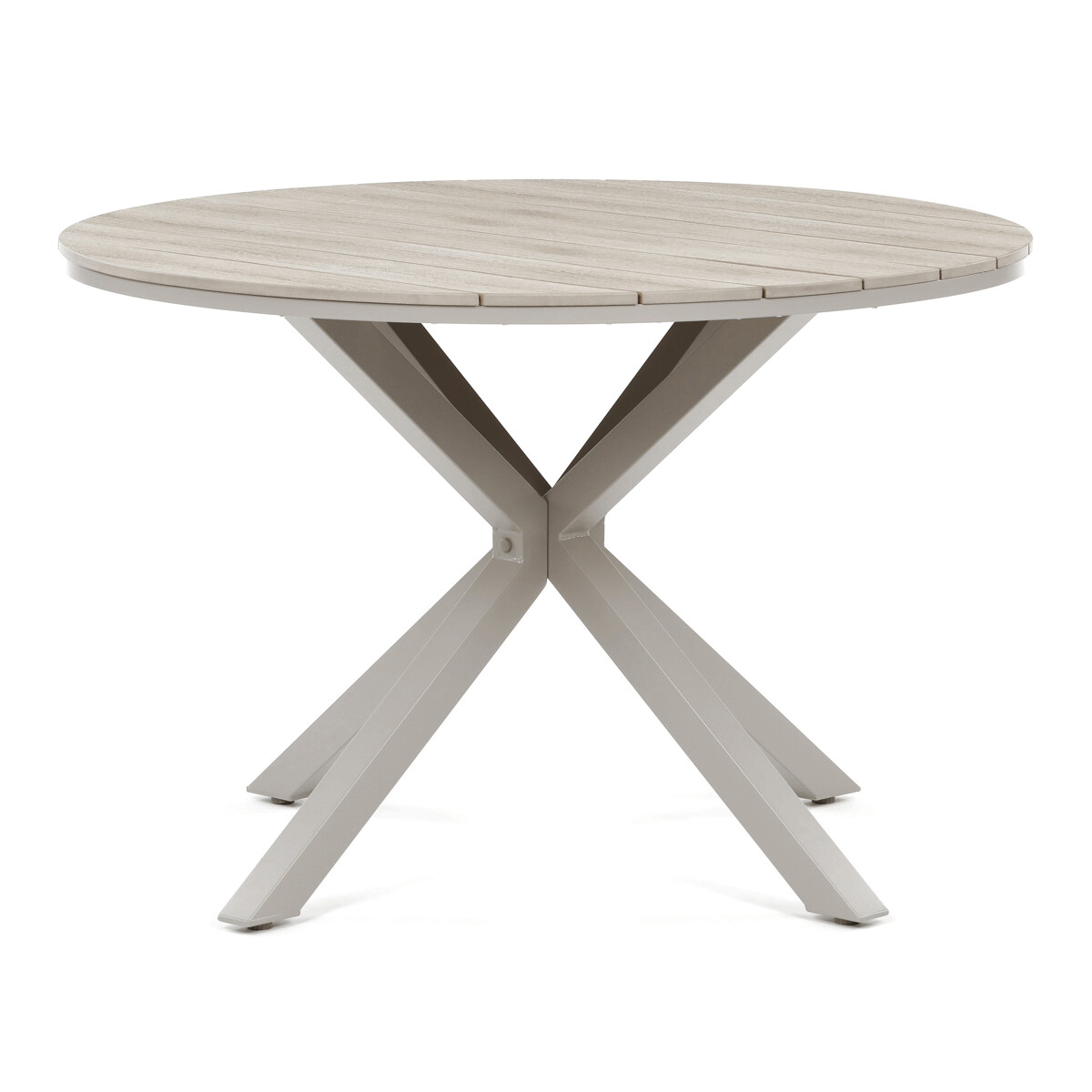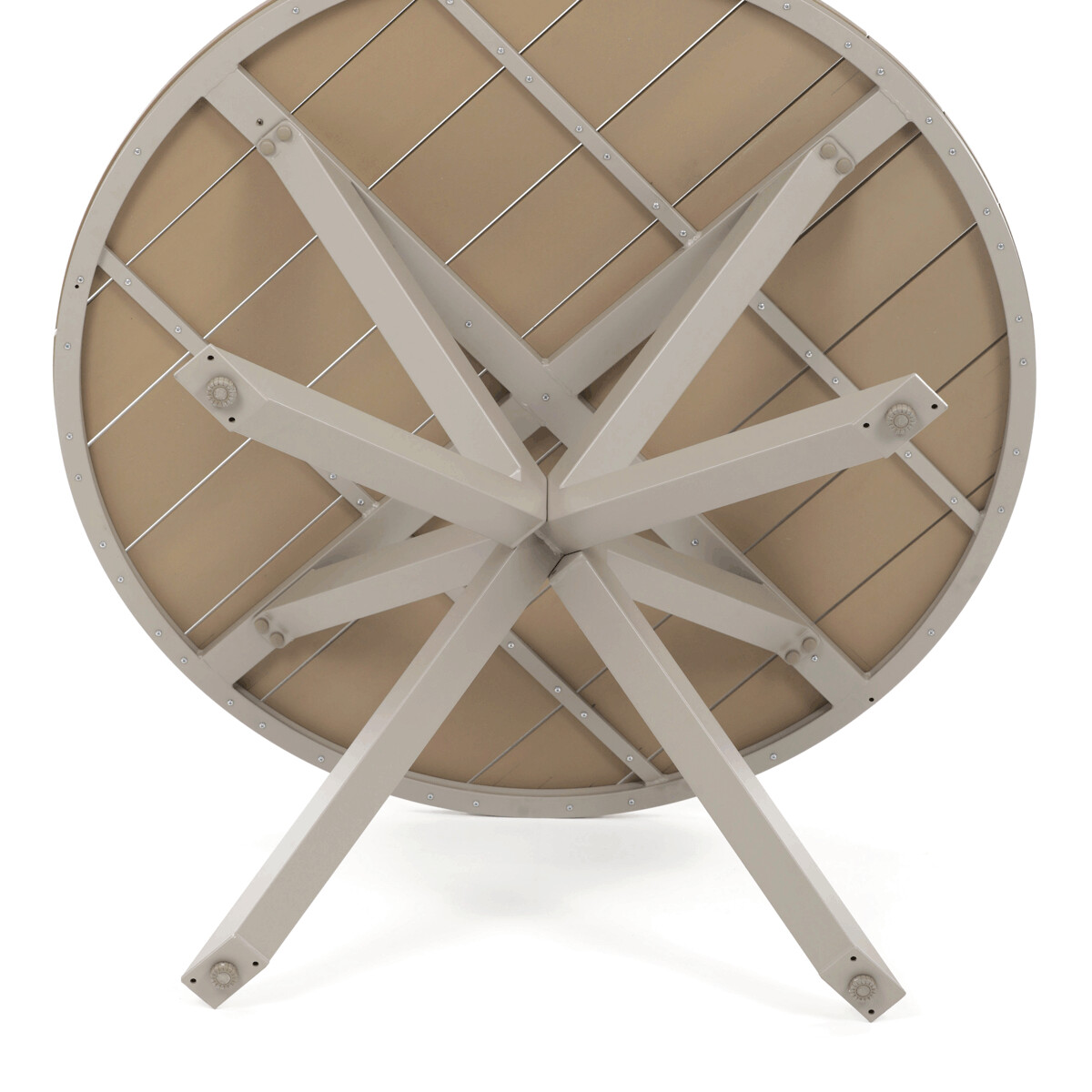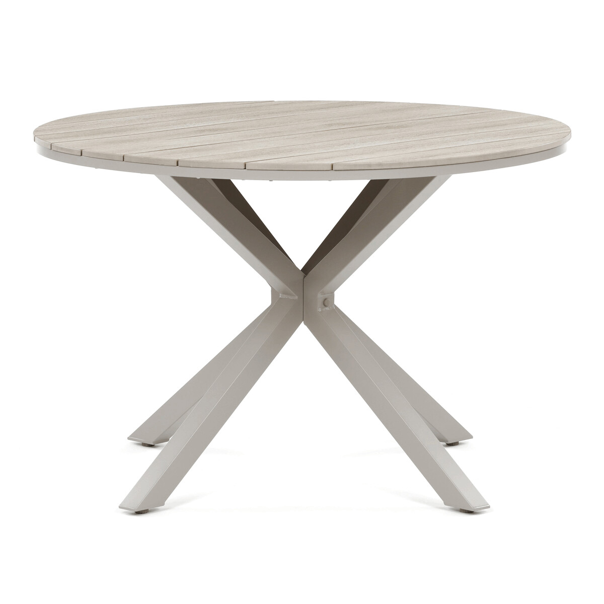 Záhradný stôl s rozmermi 110x75 cm kombinuje pevnú hliníkovú podnož s doskou z polywoodu v dekore divoký dub, ktorá ponúka odolnosť voči poveternostným vplyvom a jednoduchú údržbu. Béžové prevedenie dosky dopĺňa moderný a nadčasový dizajn, ktorý sa hodí do rôznych vonkajších priestorov, od terás po záhrady. Stabilná štvornohá konštrukcia zabezpečuje bezpečné a pevné postavenie stola aj na nerovnom povrchu. Polywoodová doska verne napodobňuje štruktúru dreva, pričom je odolná voči vlhkosti a UV žiareniu, čo predlžuje jej životnosť. Stôl je vhodný na každodenné použitie pri vonkajších stretnutiach a vďaka svojmu dizajnu vytvára príjemné prostredie na relaxáciu aj stolovanie.