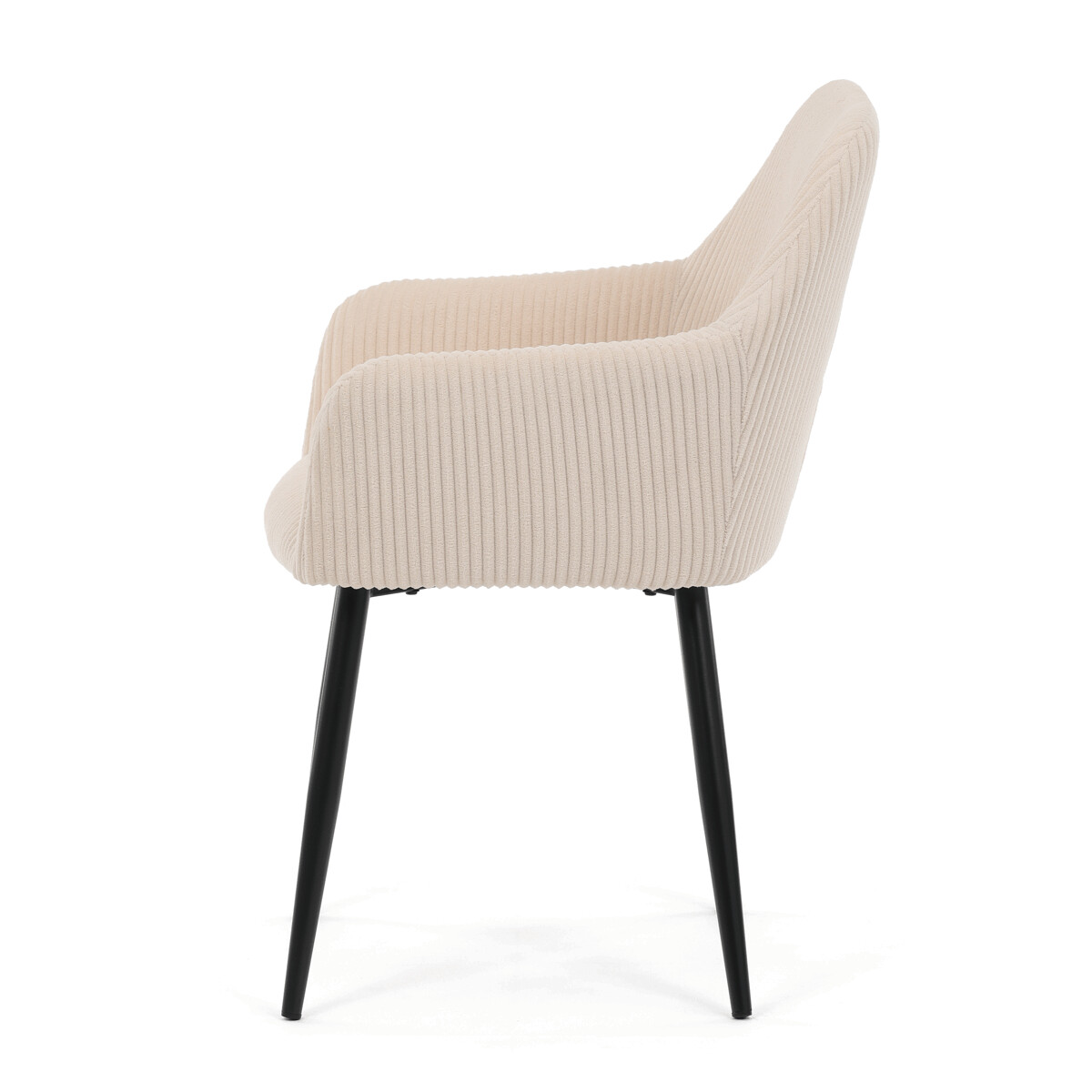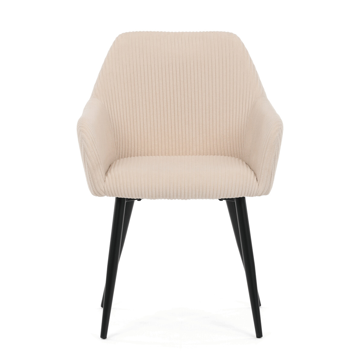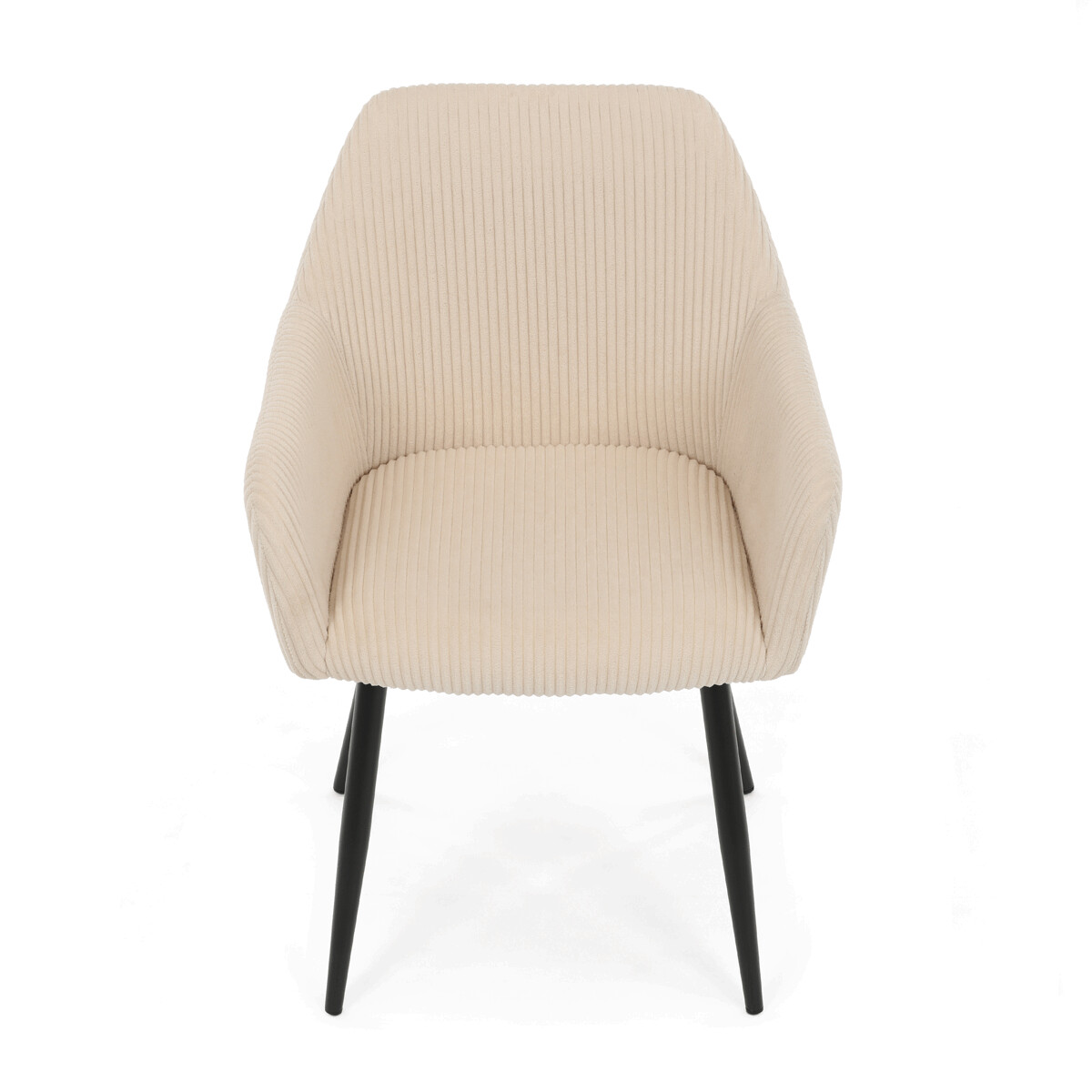 Čalúnená stolička s podrúčkami v krémovom manšestru ponúka pohodlné sedenie s príjemnou textúrou látky, ktorá je príjemná na dotyk a ľahko sa udržiava. Pevné kovové nohy v čiernom matnom prevedení zabezpečujú stabilitu a dlhú životnosť. Ergonomicky tvarované operadlo a integrované podrúčky podporujú správnu polohu tela a prispievajú k vyššiemu komfortu pri dlhšom sedení. Stolička je určená na použitie v jedálňach, kanceláriách alebo čakárňach, kde oceníte kombináciu dizajnu a funkčnosti. Nosnosť a presné rozmery sú prispôsobené bežným požiadavkám na jedálenské sedenie.