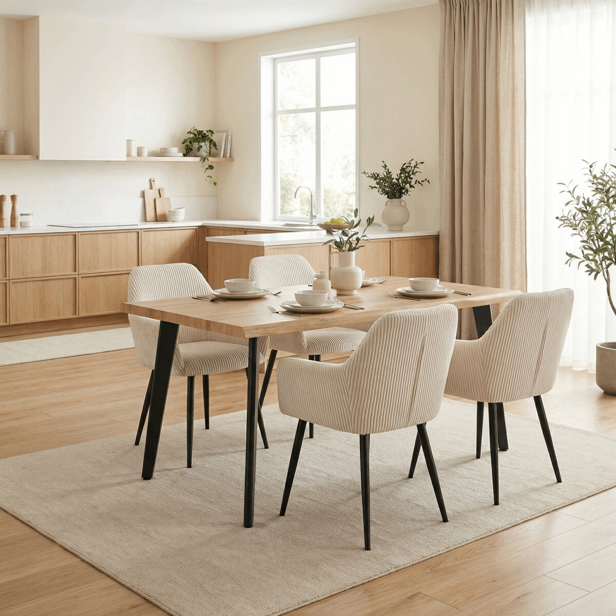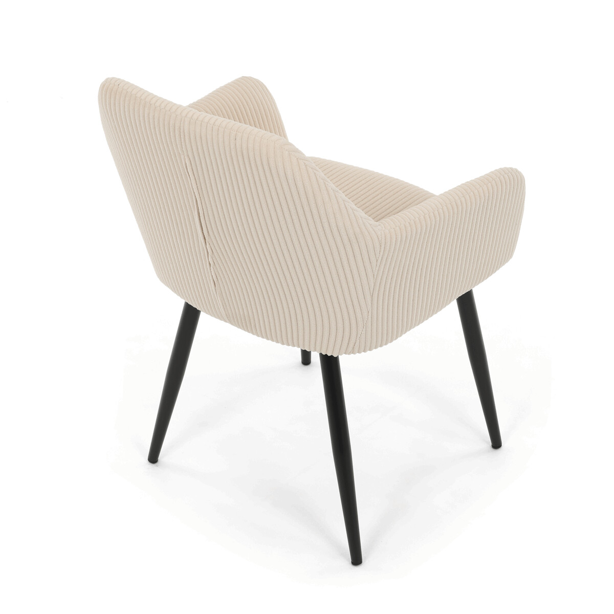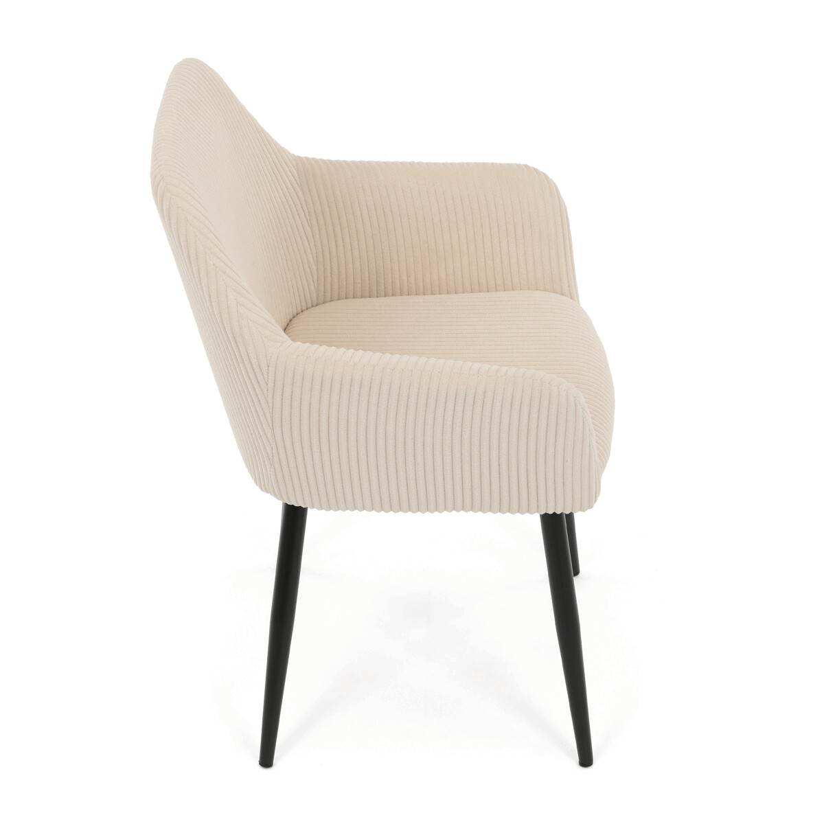 Čalúnená stolička s podrúčkami v krémovom manšestru ponúka pohodlné sedenie s príjemnou textúrou látky, ktorá je príjemná na dotyk a ľahko sa udržiava. Pevné kovové nohy v čiernom matnom prevedení zabezpečujú stabilitu a dlhú životnosť. Ergonomicky tvarované operadlo a integrované podrúčky podporujú správnu polohu tela a prispievajú k vyššiemu komfortu pri dlhšom sedení. Stolička je určená na použitie v jedálňach, kanceláriách alebo čakárňach, kde oceníte kombináciu dizajnu a funkčnosti. Nosnosť a presné rozmery sú prispôsobené bežným požiadavkám na jedálenské sedenie.