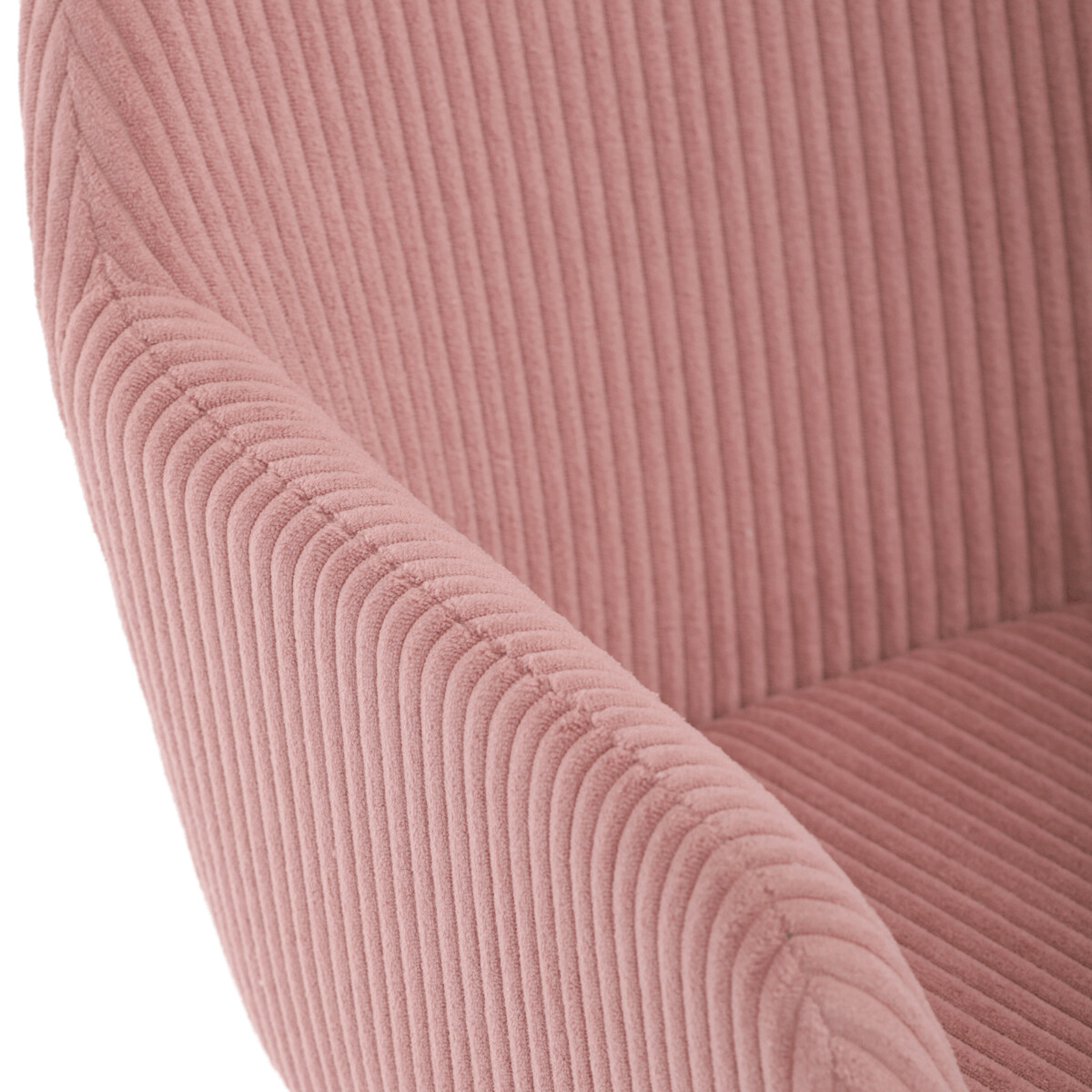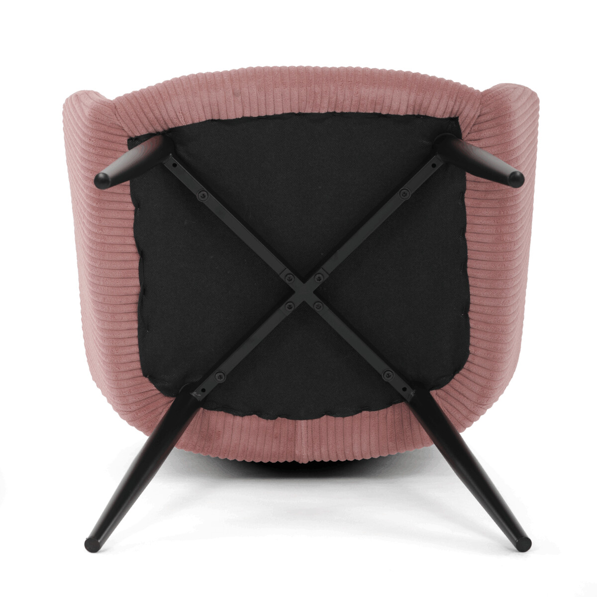 Čalúnená jedálenská stolička s podrúčkami v elegantnom staroružovom manšestru ponúka pohodlné sedenie s príjemnou textúrou látky. Pevné kovové nohy v čiernom matnom prevedení zabezpečujú stabilitu a dlhú životnosť. Sedák aj operadlo sú ergonomicky tvarované pre lepšiu oporu tela počas stolovania. Manšestr ako poťahový materiál je odolný voči bežnému opotrebovaniu a ľahko sa udržiava. Stolička je vhodná do moderných aj klasických interiérov, kde vynikne svojím jemným odtieňom a jednoduchým dizajnom.
