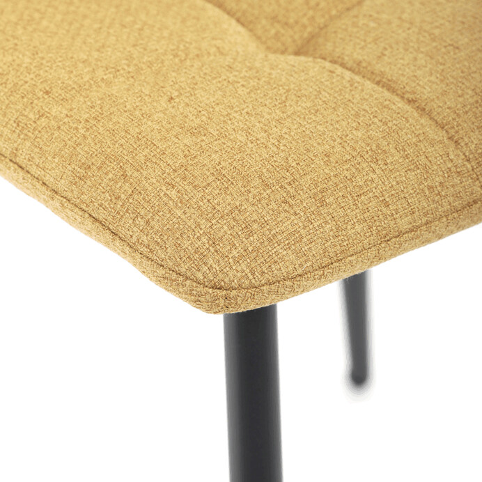 Jedálenská stolička s označením DCL-V2017 YEL2 kombinuje moderný dizajn s praktickými vlastnosťami. Sedák a operadlo sú potiahnuté žltou látkou, ktorá sa ľahko udržiava a je doplnená dizajnovým prešitím pre zvýraznenie estetického dojmu. Čierne matné kovové nohy zabezpečujú stabilitu a pevnosť celej stoličky, zatiaľ čo integrované madlo v hornej časti operadla uľahčuje manipuláciu a prenášanie. Stolička nemá podrúčky ani otočný mechanizmus, čo podporuje jednoduchosť a kompaktnosť. Vďaka kvalitnému spracovaniu a použitým materiálom je vhodná na každodenné použitie v jedálňach aj komerčných priestoroch.