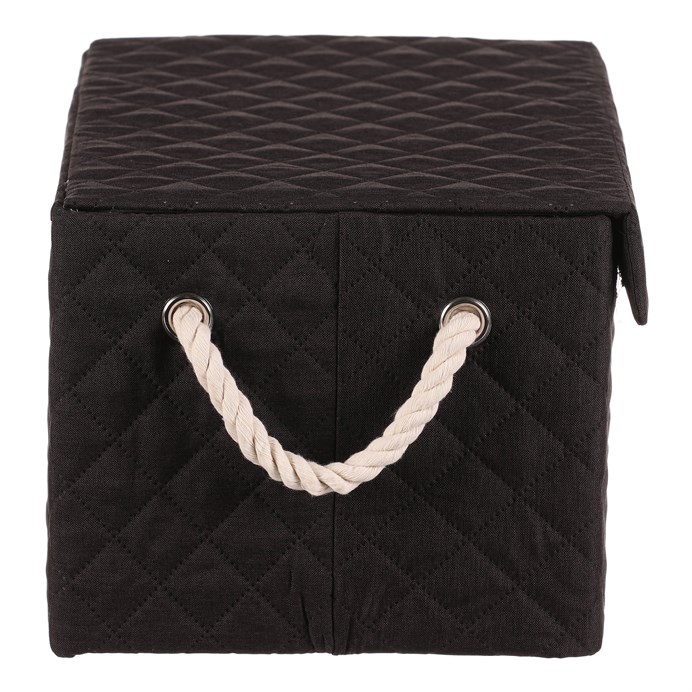 Kôš regálový - látkový s ušami, hranatý, čierny
