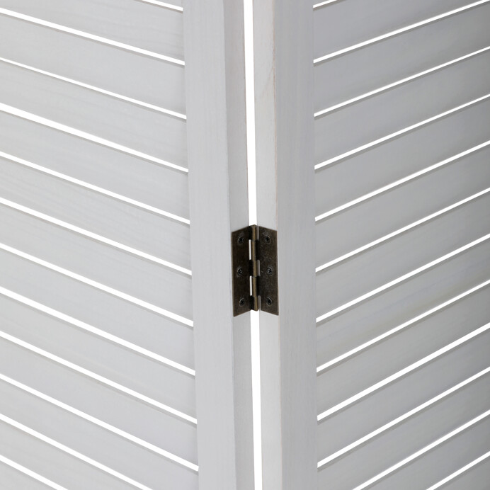 Trojdielny paraván vyrobený z masívneho smrekového dreva v bielej farbe ponúka praktické riešenie na rozdelenie priestoru v interiéri. Každý diel je doplnený dekoratívnymi výrezmi v hornej časti, ktoré prepúšťajú svetlo a zároveň zachovávajú súkromie. Masívny materiál zabezpečuje pevnosť a stabilitu, zatiaľ čo prírodná textúra dreva dodáva výrobku prirodzený vzhľad. Paraván je vhodný na použitie v obývacích izbách, spálňach alebo kanceláriách, kde pomáha vytvoriť útulné a funkčné prostredie. Vďaka skladacej konštrukcii je ľahko premiestniteľný a skladovateľný.