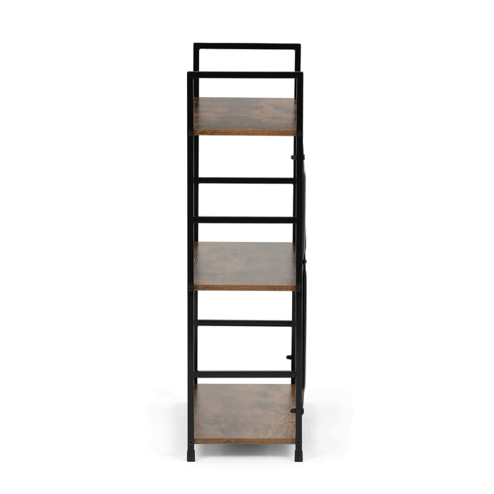 Regál s tromi policami v dekore starého dreva ponúka praktický odkladací priestor pre rôzne predmety. Police sú vyrobené z MDF dosiek s povrchovou úpravou pripomínajúcou prírodné drevo, ktoré dodáva nábytku rustikálny vzhľad. Stabilná čierna kovová podnož zabezpečuje pevnosť a dlhú životnosť regálu, pričom jej dizajn s výstuhami prispieva k celkovej stabilite. Regál je vhodný do obývacích izieb, pracovných kútov aj kancelárií, kde poslúži ako funkčný a zároveň štýlový doplnok interiéru.