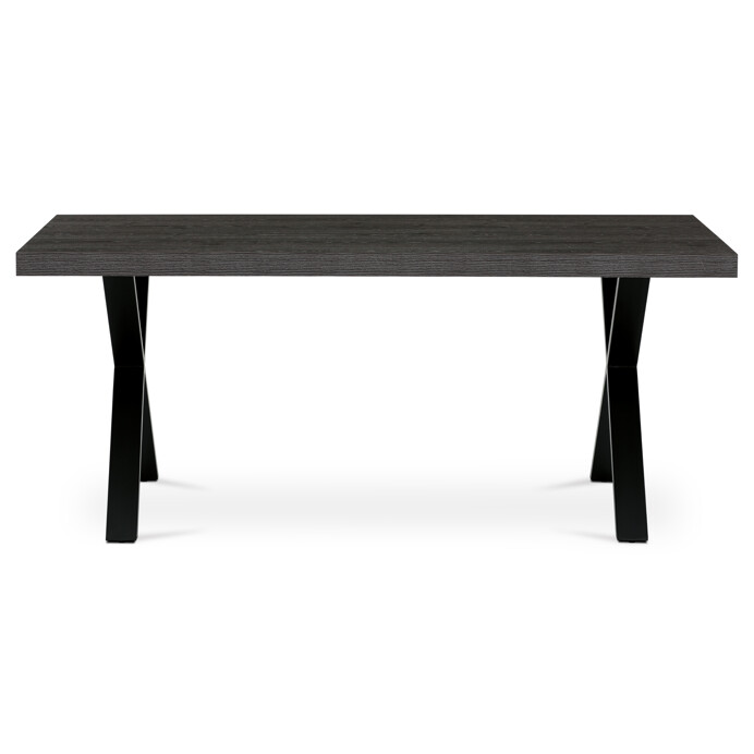 Jedálenský stôl HT-R5316 GREY ponúka modernú kombináciu dekoru sivého dubu na MDF doske s matnou povrchovou úpravou a pevným kovovým podnožím v tvare X v čiernej farbe. Doska stola je vyrobená z lamina s ABS hranou, ktorá zvyšuje odolnosť proti poškodeniu a uľahčuje údržbu. Stabilné kovové nohy zabezpečujú pevnosť a stabilitu celej konštrukcie, pričom dizajn v tvare X dodáva stolíku výrazný industriálny charakter. Rozmery 180x90x76 cm poskytujú dostatok priestoru pre pohodlné stolovanie aj väčší počet osôb. Stôl je vhodný do moderne zariadených jedálenských priestorov, kde oceníte kombináciu praktickosti a štýlového vzhľadu.