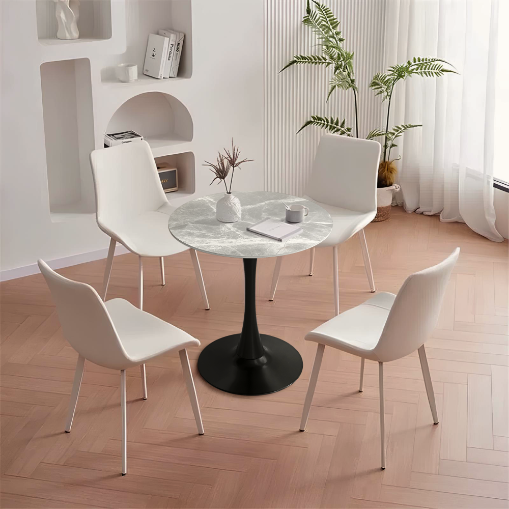 Kondela Jedálenský stôl, sivý mramor/čierna, priemer 90 cm, LORIAN TYP 1