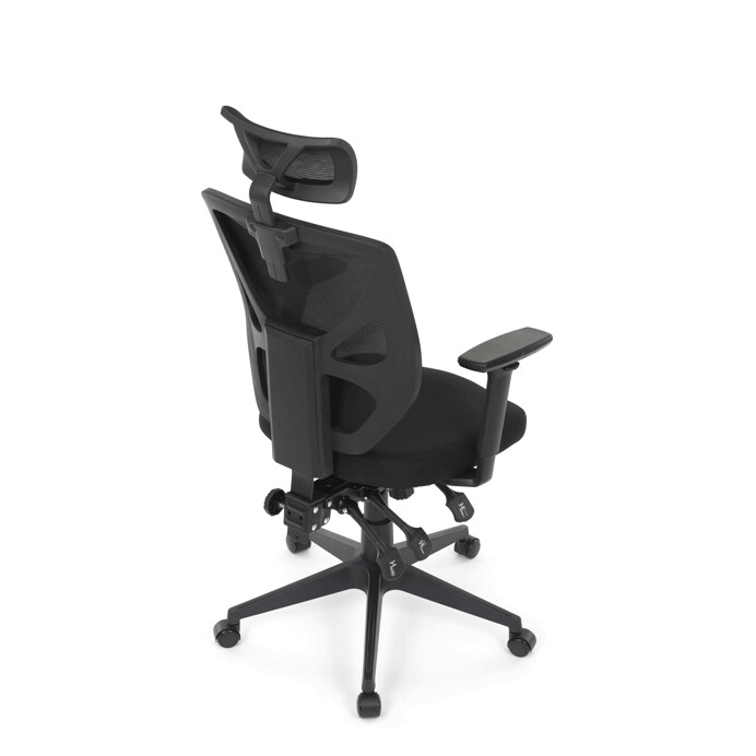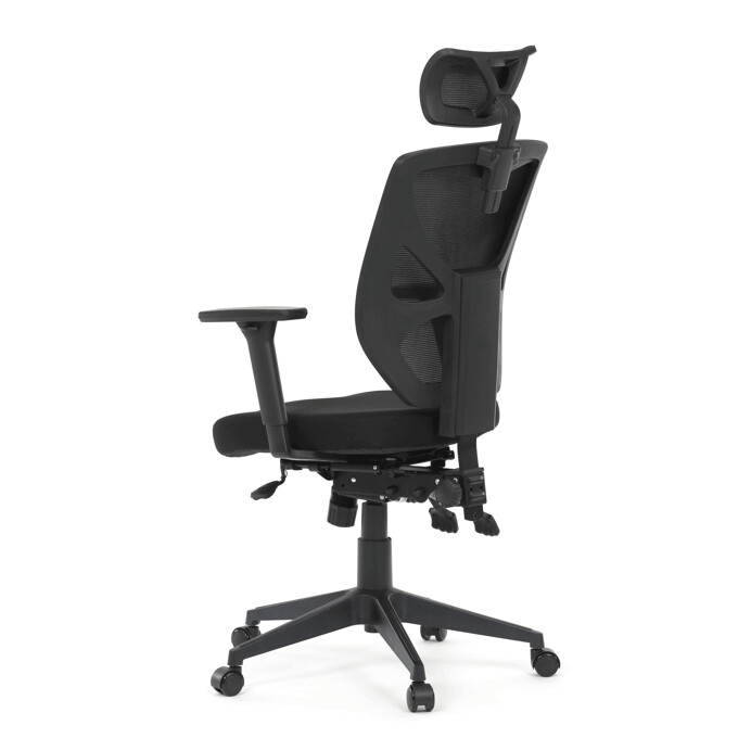 Kancelárska stolička s čiernym mesh poťahom ponúka vysoký komfort vďaka ergonomicky tvarovanému operadlu a integrovanej opierke hlavy, ktorá podporuje správne držanie krčnej chrbtice. Sedák je vybavený posuvnou funkciou pre individuálne nastavenie hĺbky sedenia, čo zvyšuje pohodlie pri dlhodobej práci. Synchronný mechanizmus umožňuje plynulé naklápanie operadla s možnosťou aretácie v niekoľkých polohách, čím prispieva k ergonómii a podpore správneho držania tela. 3D podrúčky je možné nastaviť v troch smeroch – výškovo, do strán aj dopredu – pre maximálne prispôsobenie používateľovi. Plastový kríž zabezpečuje stabilitu a ľahkosť celej stoličky, ktorá je vhodná do kancelárskeho prostredia aj domácej pracovnej zóny.