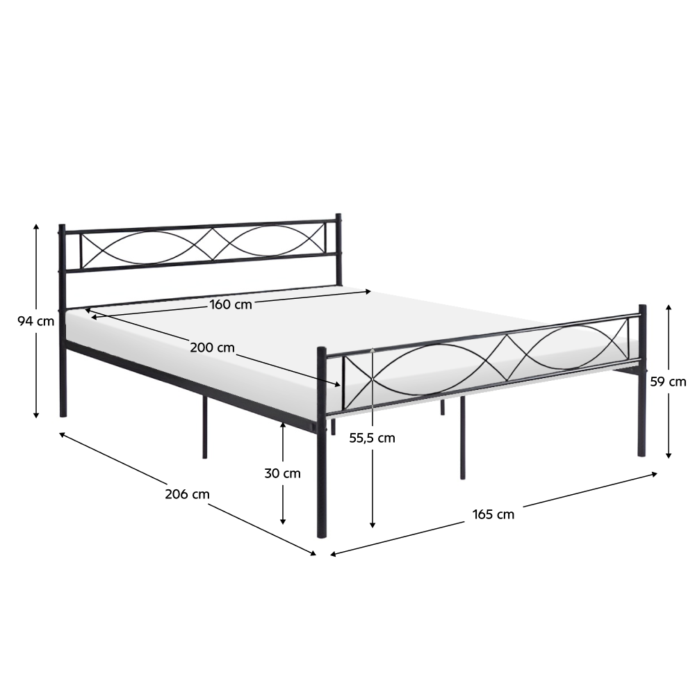 Kondela Kovová posteľ s roštom, 160x200, čierna, STELVIA