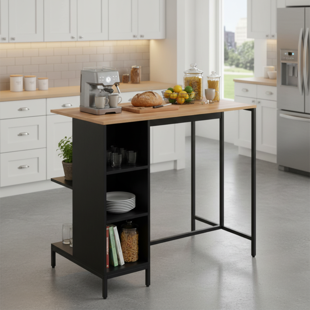 Kondela Kuchynský ostrovček, 100x60 cm, dub/čierna, FIGO