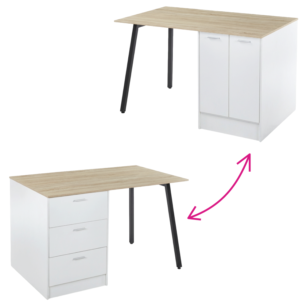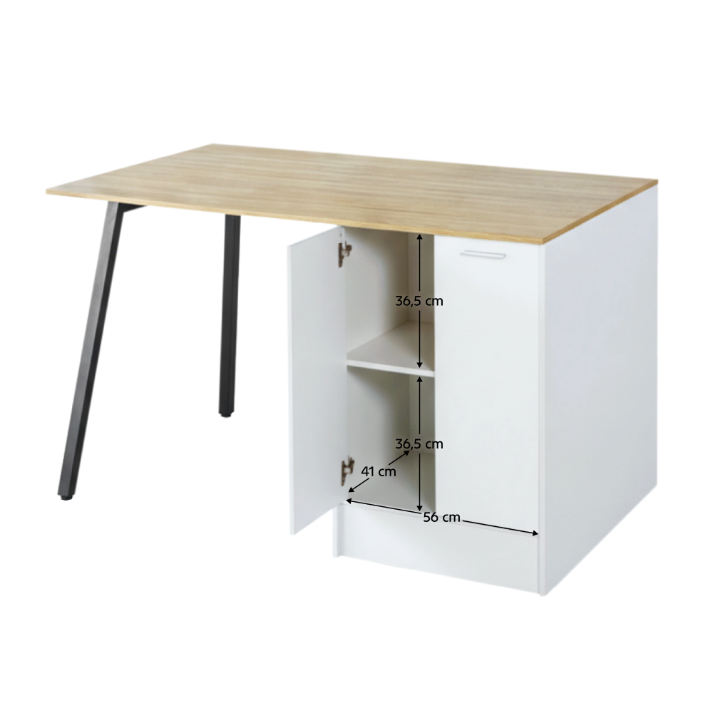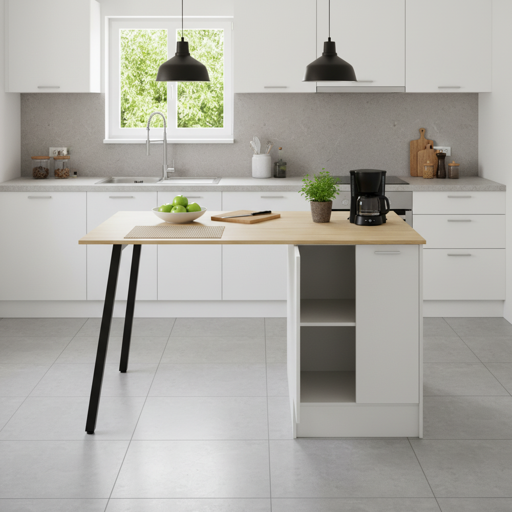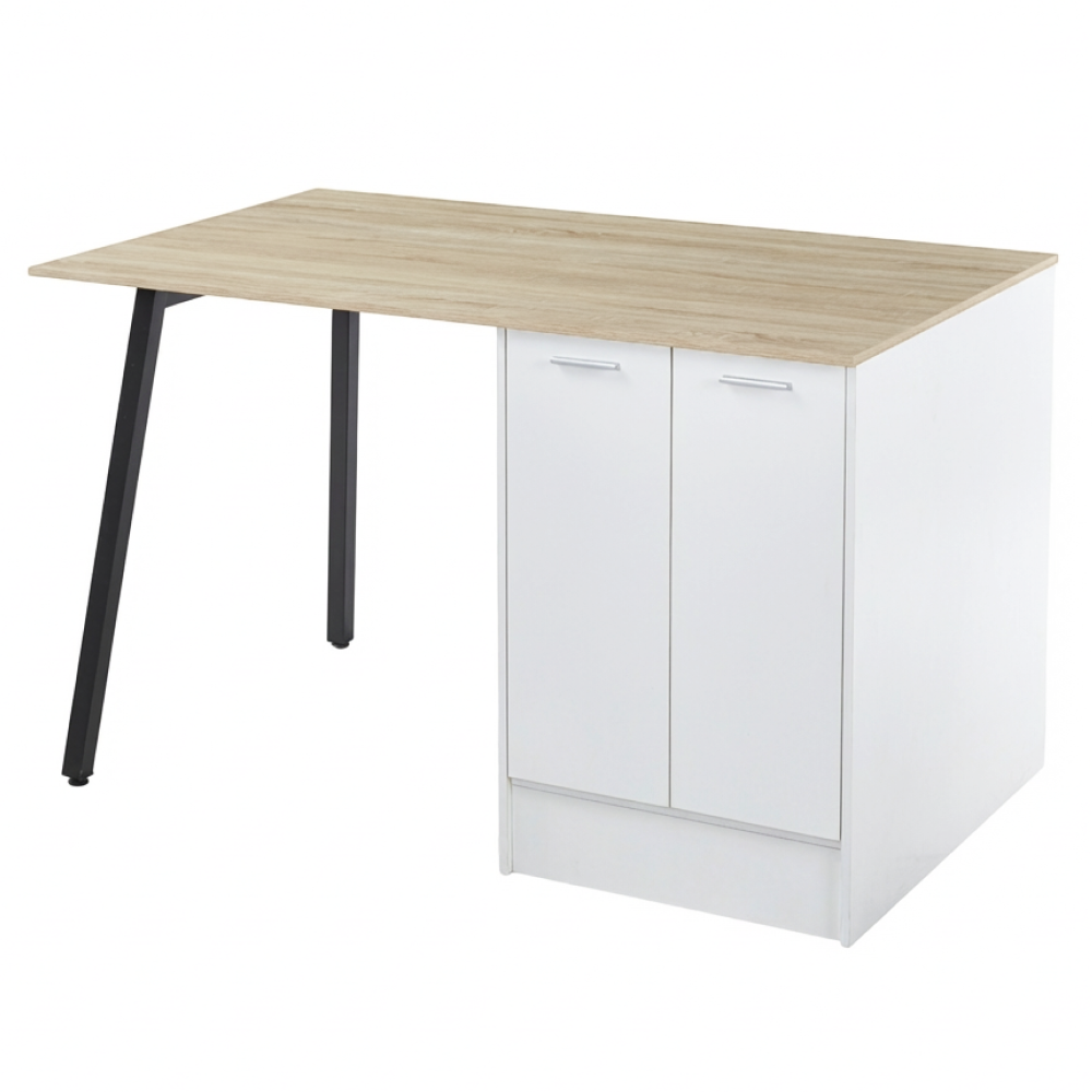 Kondela Kuchynský ostrovček, 150x90 cm, dub/biela/čierna, XILO