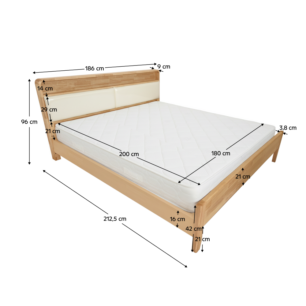 Kondela Manželská posteľ, 180x200, masívne drevo, prírodná, KIMIA