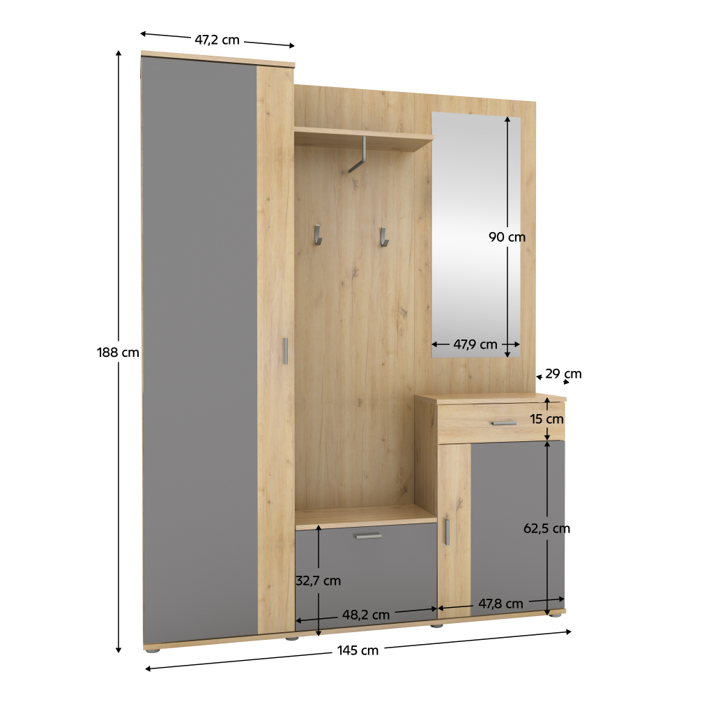 Šírka a výška vešiakovej skrine: 47,2x188 cm