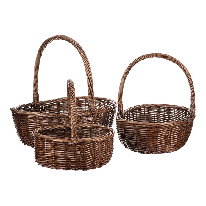 Kôš prútený - s uchom, hnedý, cena za sadu 3 ks
