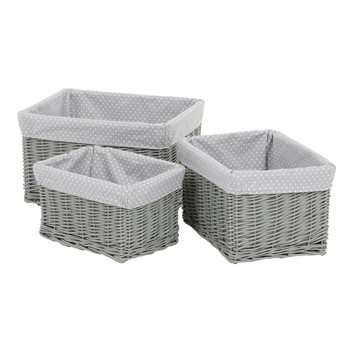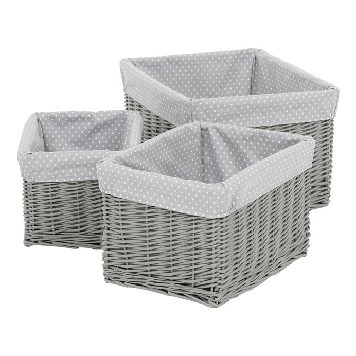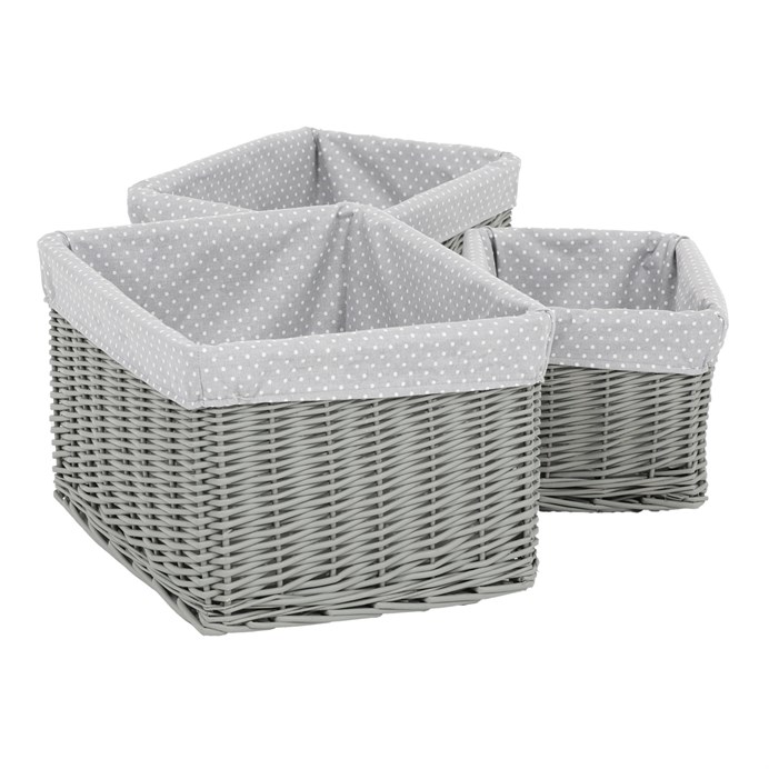 Kôš regálový - prútený, šedý s látkou, cena za sadu 3 ks