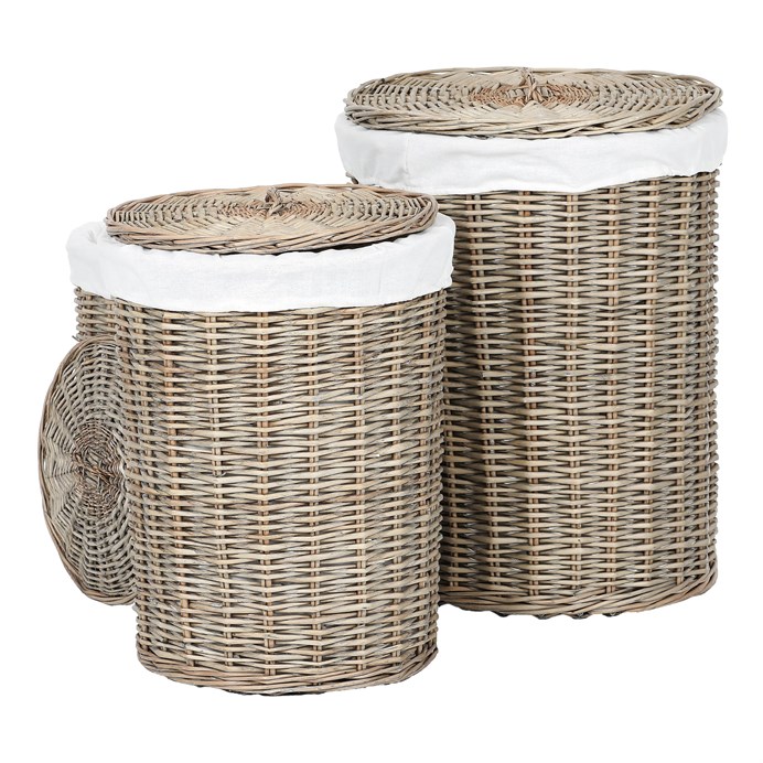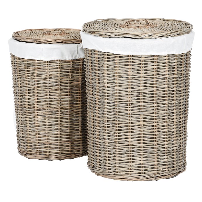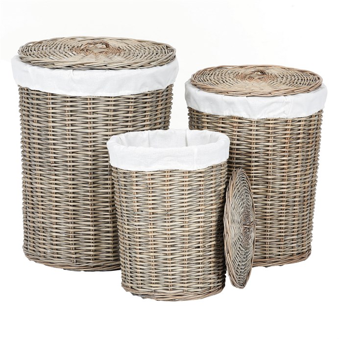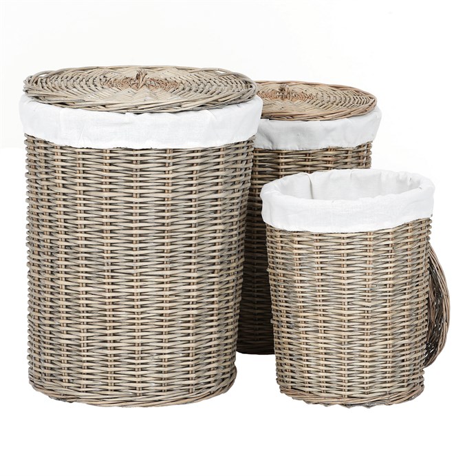 Kôš prútený - práčovný, s vekom, sivý, cena za sadu 3 ks