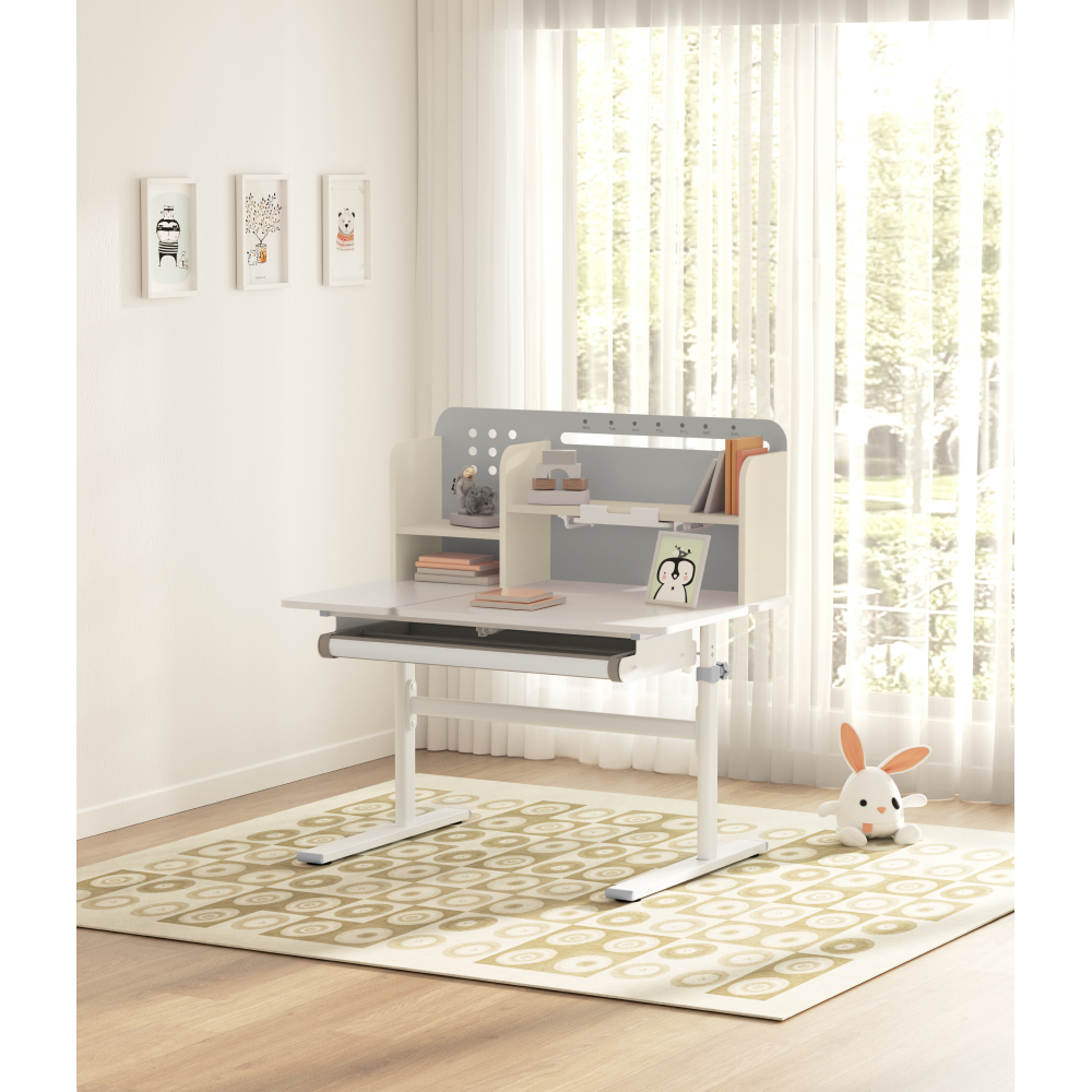 Výška stola a sklon pracovnej plochy sa nastavuje pomocou plynového piestu a páky