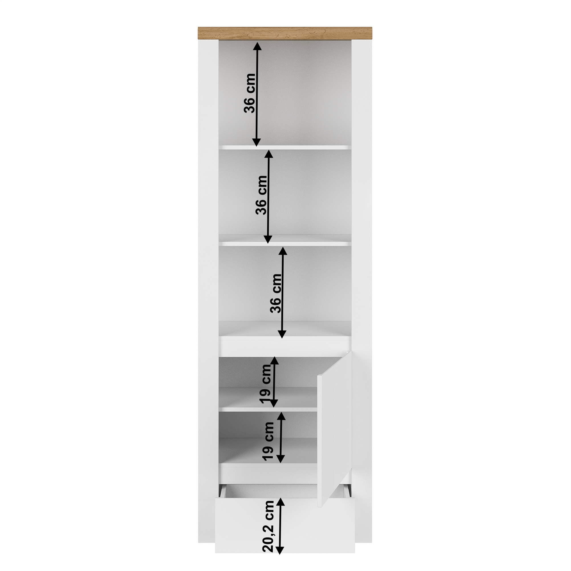 Výška horných políc: 36 cm