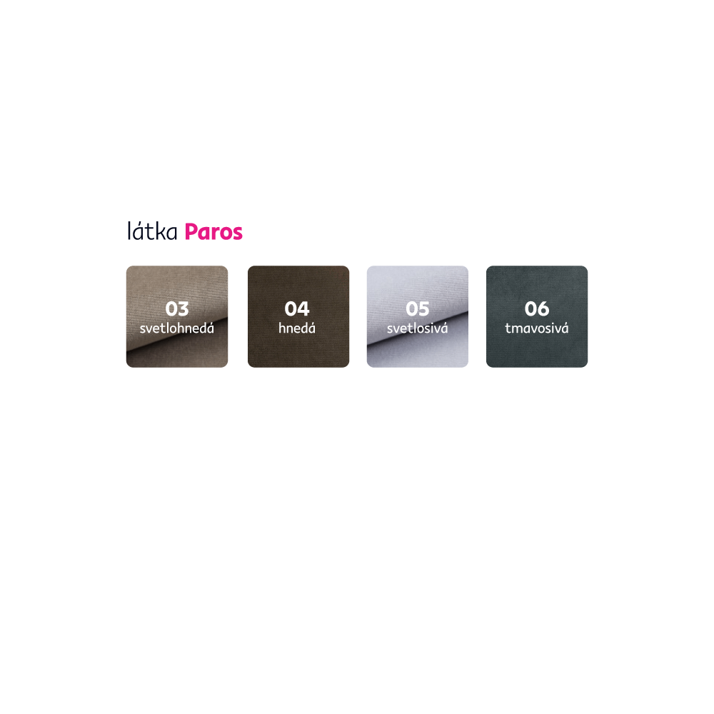 Možnosť objednania v 4 farebných odtieňoch látky Paros s dodacou lehotou 6-8 týždňov. Pri individuálnej objednávke je potrebné zaplatiť 20% zálohu z danej sumy. Po uhradení zálohy bude Vaša požiadavka zadaná do výroby.