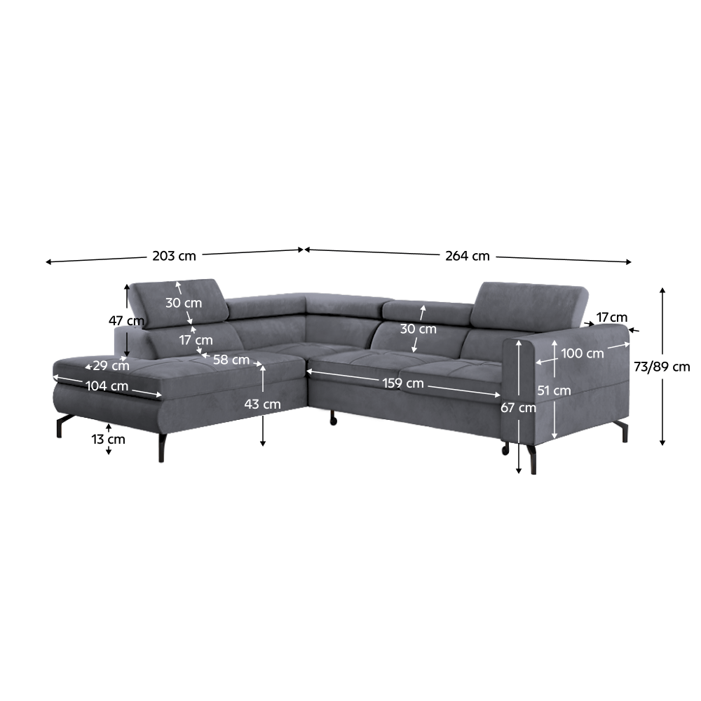 Rozmery (ŠxHxV): 264x203x73/89 cm