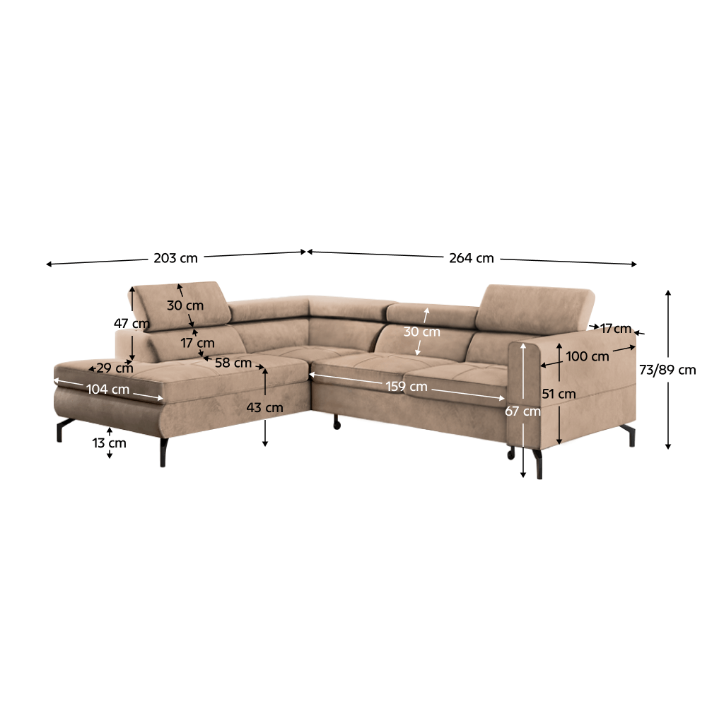 Rozmery (ŠxHxV): 264x203x73/89 cm