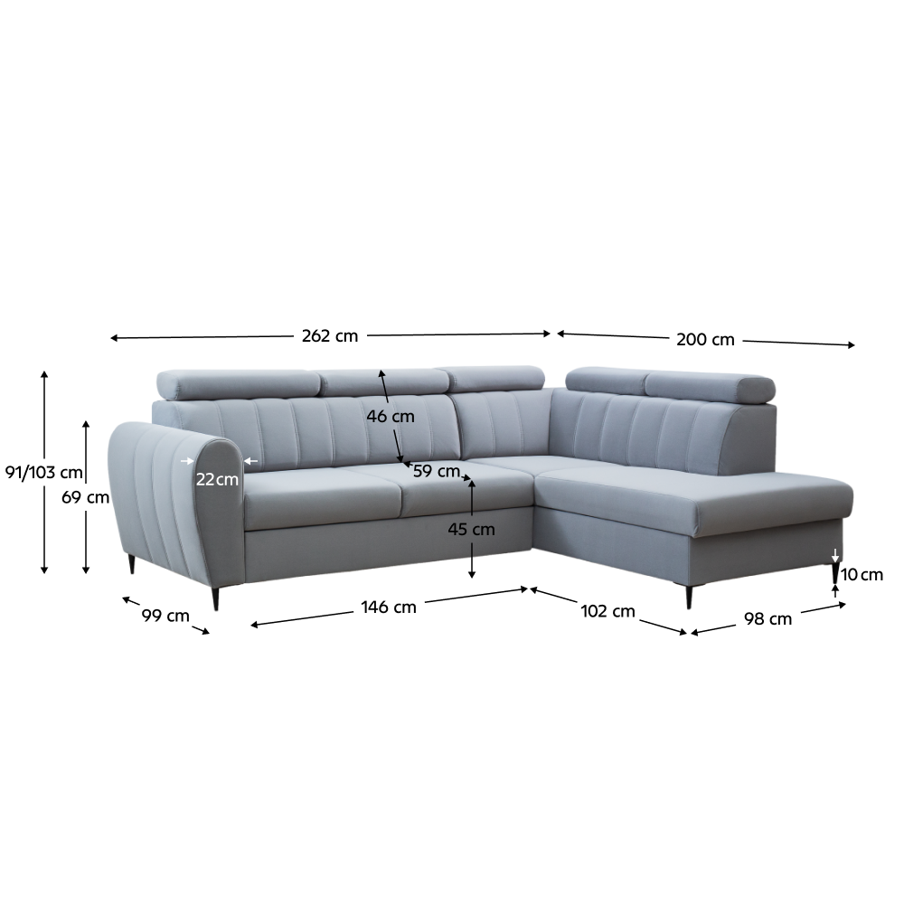 Rozmery (ŠxHxV): 262x200x91/103 cm