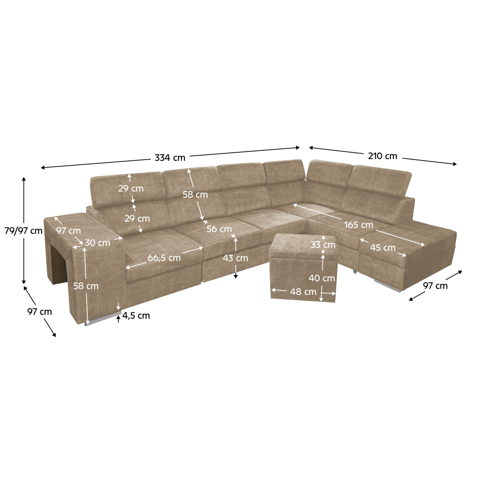 Rozmery (ŠxHxV): 334x210x79/97 cm