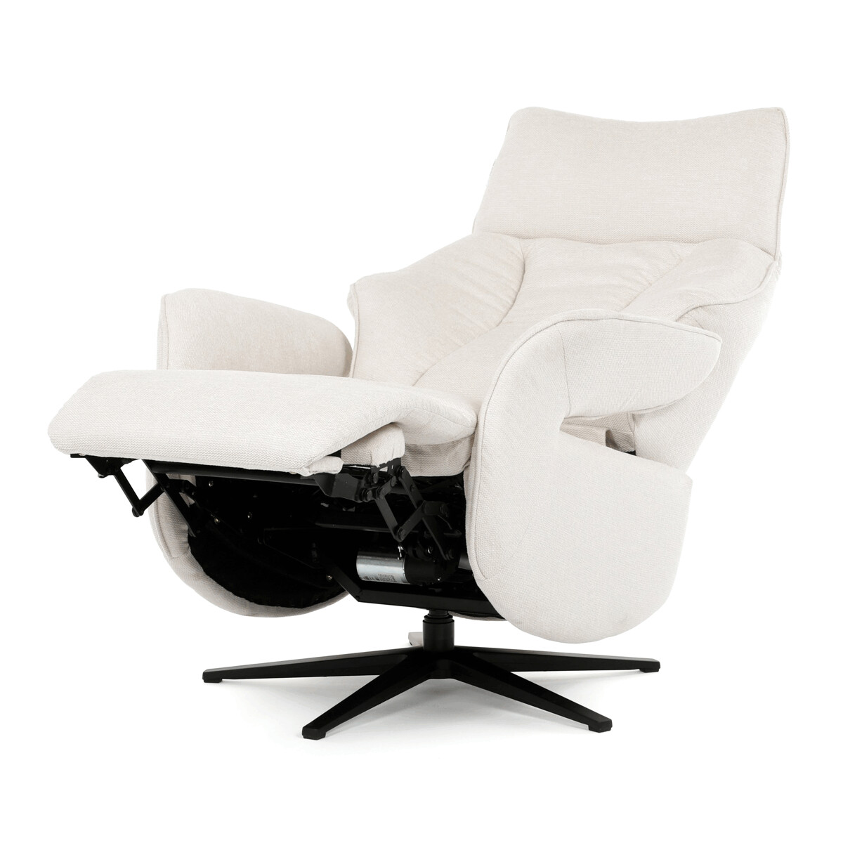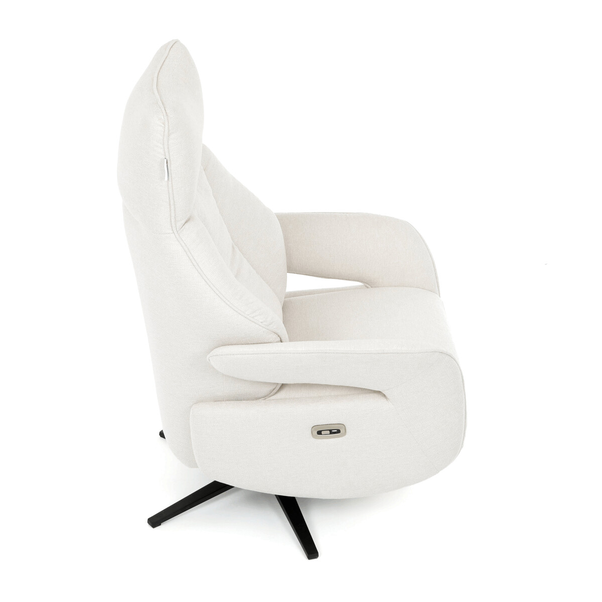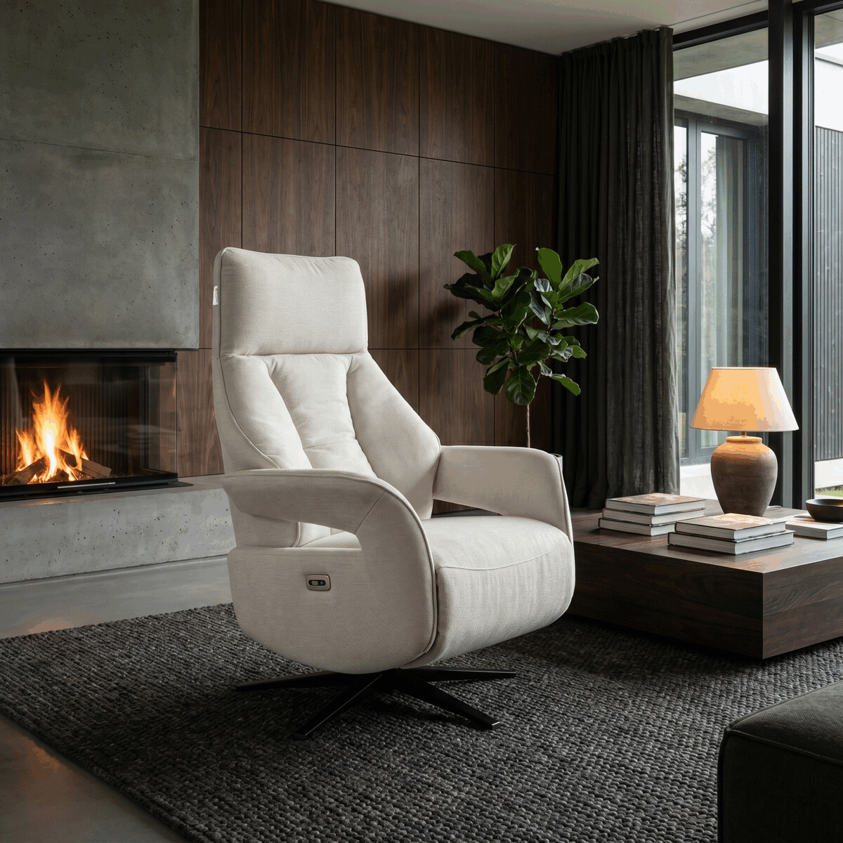 Polohovacie kreslo s elektrickým ovládaním a jedným motorom ponúka komfortnú relaxáciu s možnosťou presného nastavenia polohy. Poťah je z príjemnej krémovej látky, ktorá zabezpečuje mäkký dotyk a jednoduchú údržbu. Pevná kovová podnož s piatimi ramenami umožňuje stabilný otočný pohyb o 360°, čo zvyšuje flexibilitu používania. Kreslo je vybavené polstrovanými podrúčkami, ktoré dopĺňajú ergonómiu a pohodlie pri sedení. Elektrický mechanizmus umožňuje plynulé a tiché polohovanie, čo ocenia používatelia hľadajúci moderné a praktické riešenie na oddych.