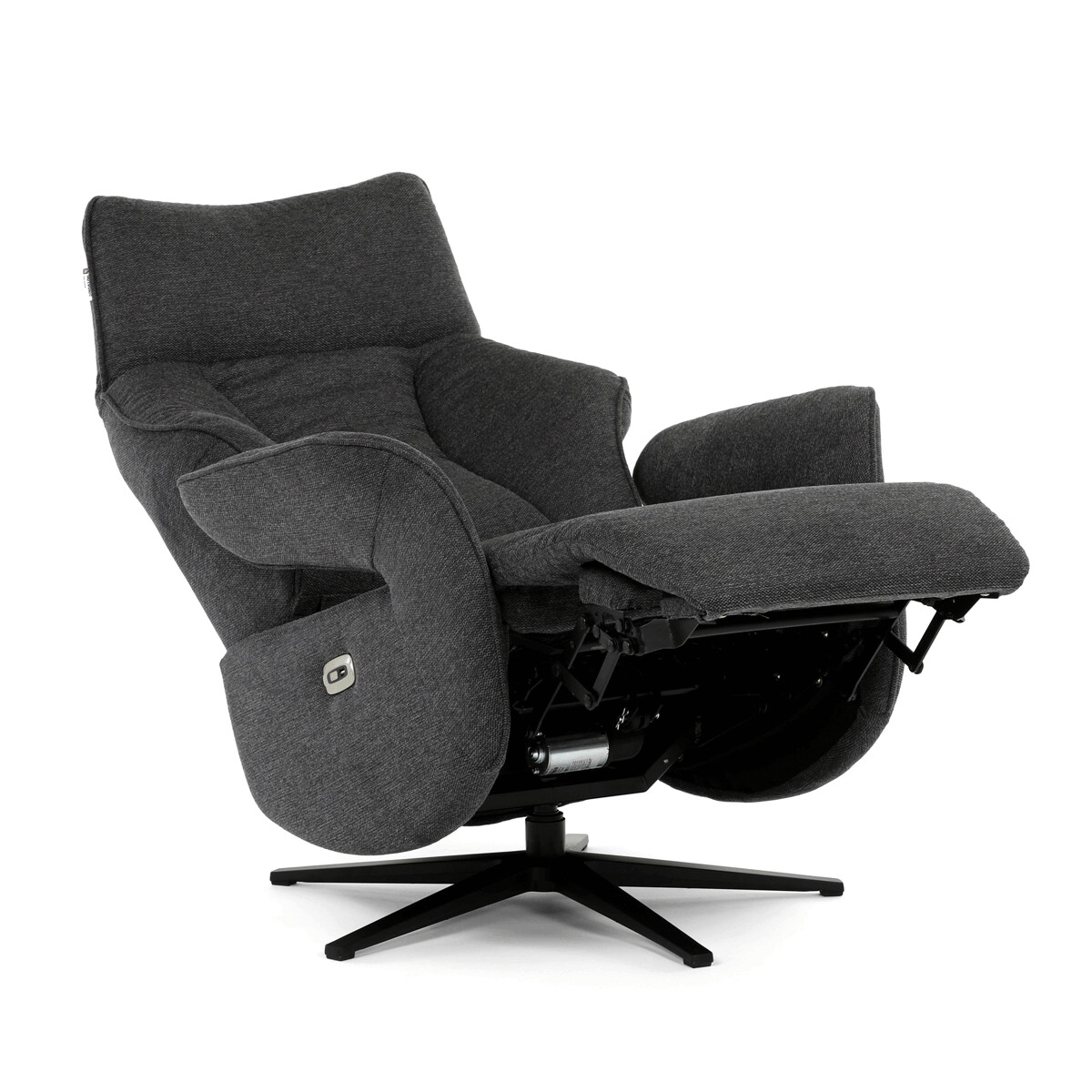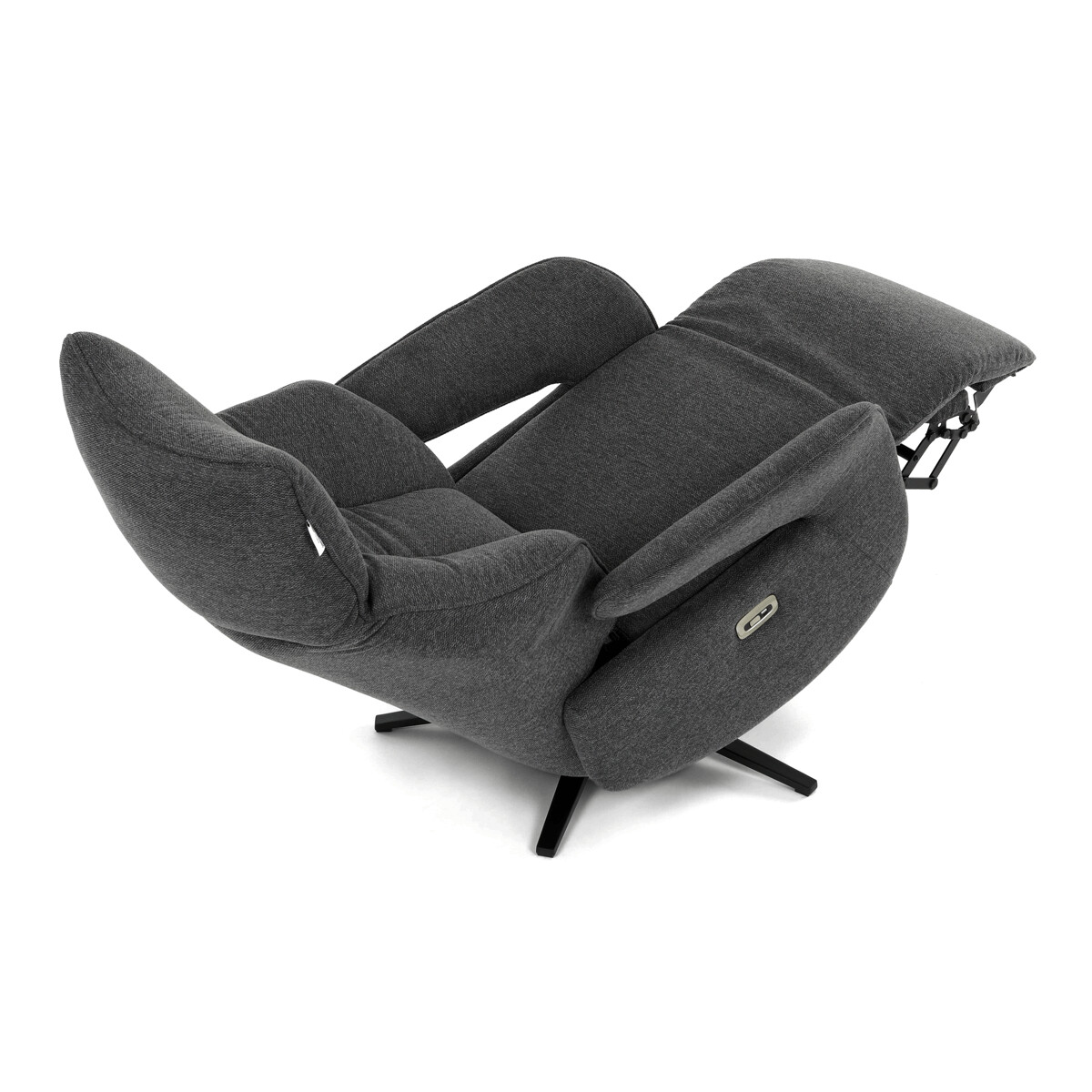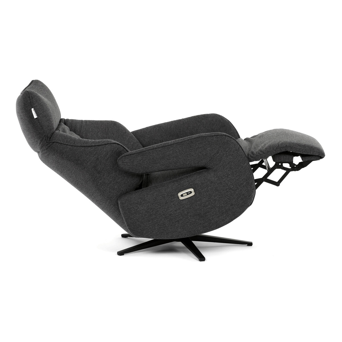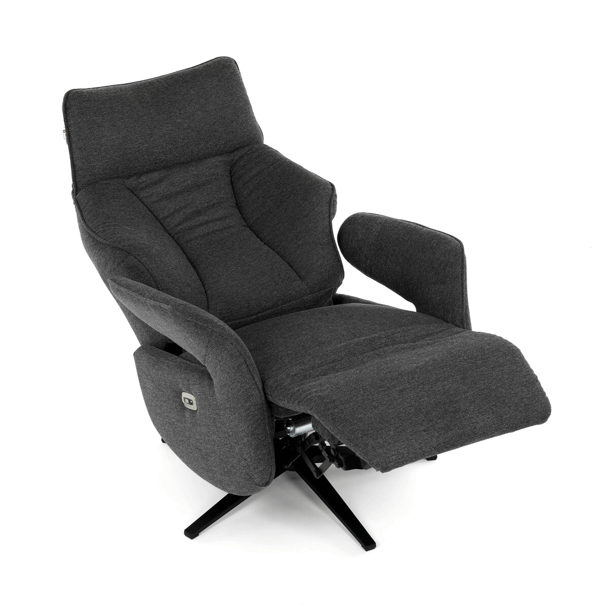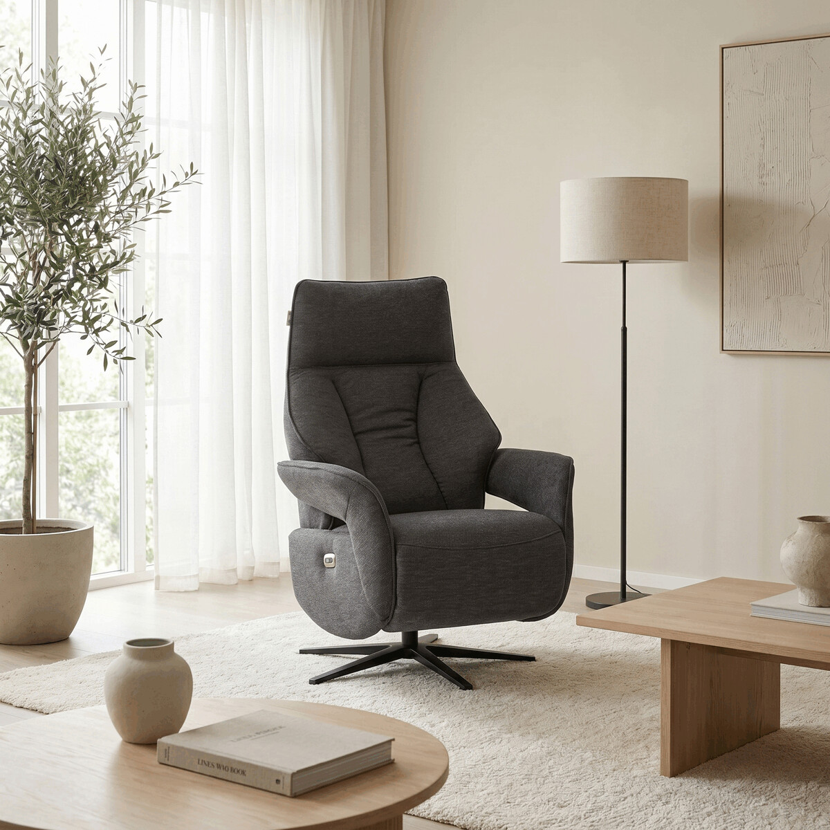 Polohovacie kreslo s elektrickým ovládaním a jedným motorom ponúka komfortnú relaxáciu s možnosťou presného nastavenia polohy. Poťah je z kvalitnej sivej látky, ktorá je príjemná na dotyk a ľahko sa udržiava, zatiaľ čo pevná kovová podnož zabezpečuje stabilitu a dlhú životnosť. Kreslo je vybavené integrovaným ovládacím panelom na boku pre jednoduché nastavenie polohy sedáka a operadla, ktoré je možné plynulo polohovať podľa potreby. Ergonomicky tvarované podrúčky a vysoké operadlo podporujú správne držanie tela a prispievajú k pohodliu pri sedení. Vďaka otočnej základni je možné kreslo ľahko natočiť do požadovaného smeru, čo zvyšuje jeho praktickosť v interiéri.