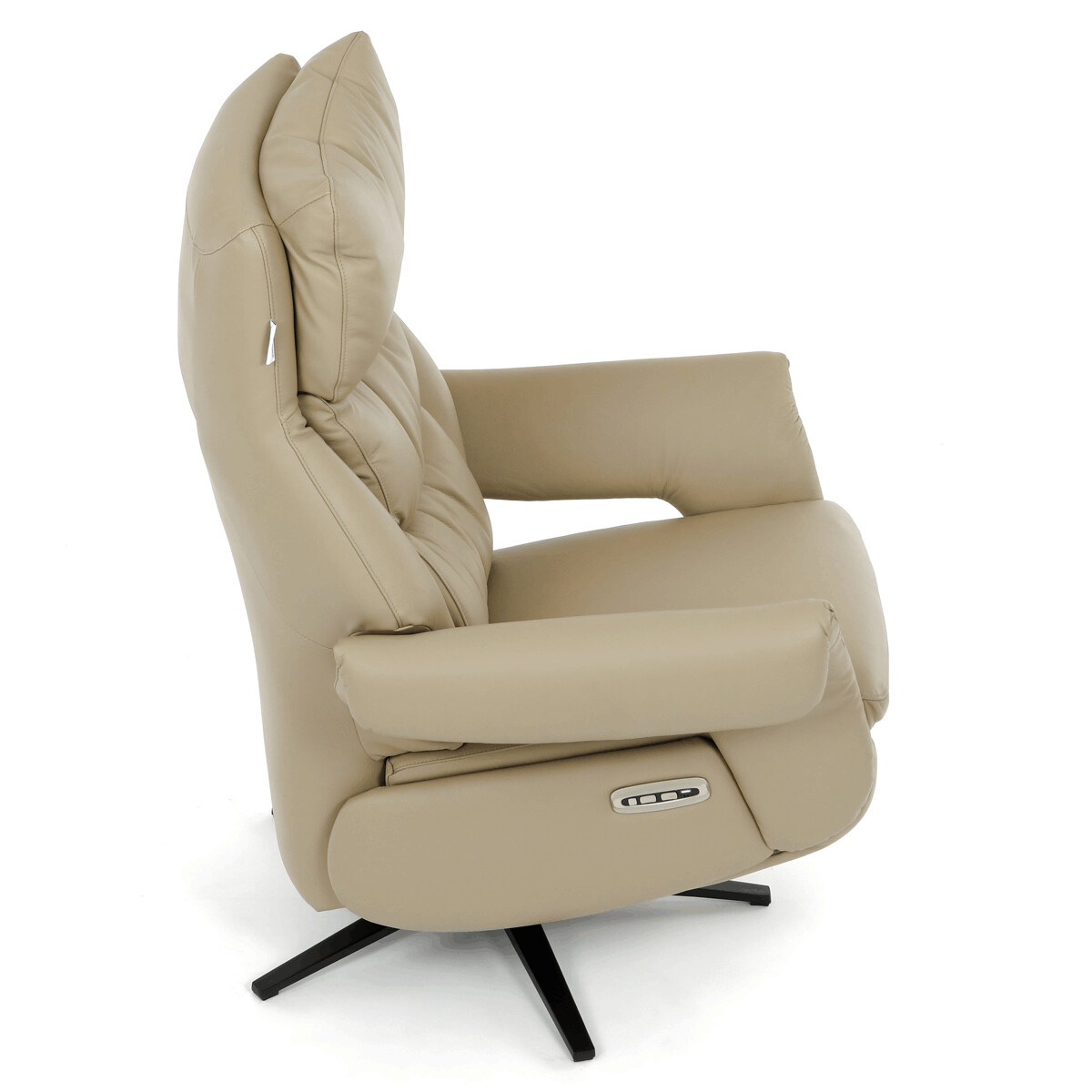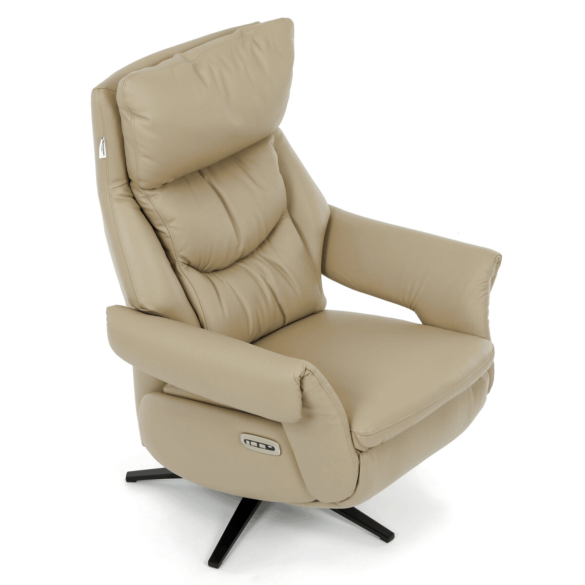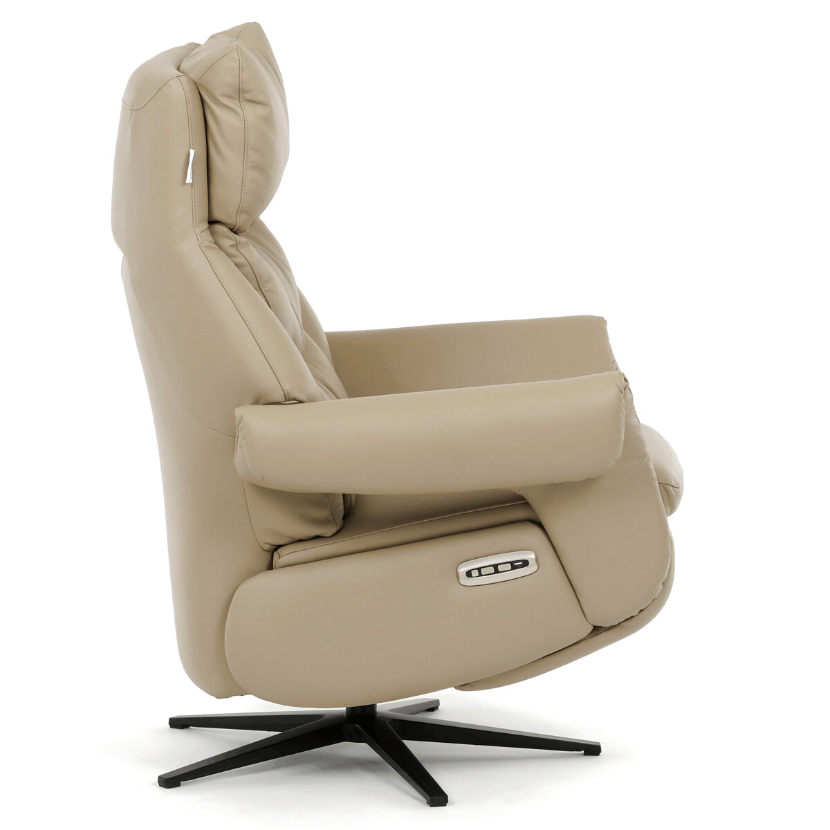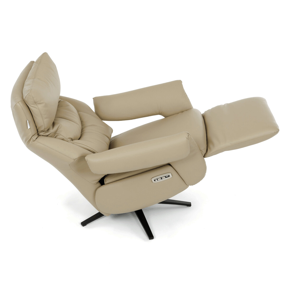 Polohovacie kreslo s elektrickým ovládaním a dvoma motormi ponúka komfortnú relaxáciu s možnosťou individuálneho nastavenia operadla a podnožky. Poťah je vyrobený z kombinácie pravej kože a béžovej ekokože, ktorá je príjemná na dotyk a ľahko sa udržiava. Pevná kovová podnož zabezpečuje stabilitu a zároveň umožňuje plynulý 360° otočný pohyb. Široké čalúnené podrúčky dopĺňajú ergonomický tvar sedáka a operadla, ktoré poskytujú dostatočnú oporu pre chrbát aj hlavu. Elektrické ovládanie s dotykovými plochami umožňuje jednoduché a presné nastavenie polohy kresla podľa individuálnych potrieb.