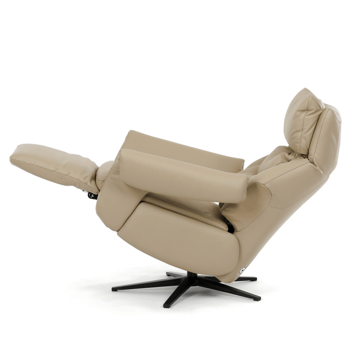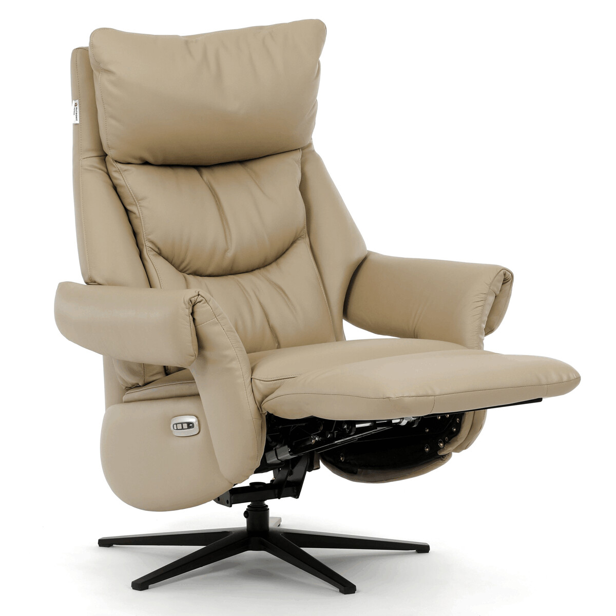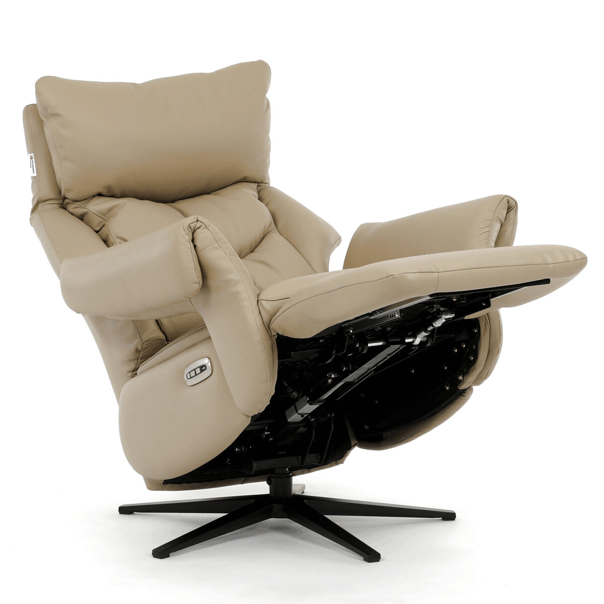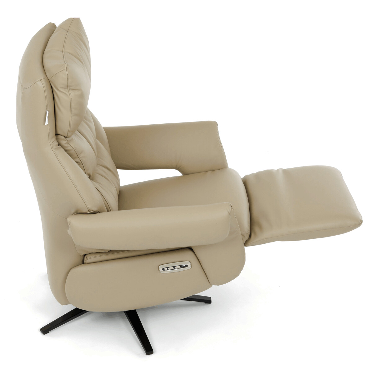 Polohovacie kreslo s elektrickým ovládaním a dvoma motormi ponúka komfortnú relaxáciu s možnosťou individuálneho nastavenia operadla a podnožky. Poťah je vyrobený z kombinácie pravej kože a béžovej ekokože, ktorá je príjemná na dotyk a ľahko sa udržiava. Pevná kovová podnož zabezpečuje stabilitu a zároveň umožňuje plynulý 360° otočný pohyb. Široké čalúnené podrúčky dopĺňajú ergonomický tvar sedáka a operadla, ktoré poskytujú dostatočnú oporu pre chrbát aj hlavu. Elektrické ovládanie s dotykovými plochami umožňuje jednoduché a presné nastavenie polohy kresla podľa individuálnych potrieb.