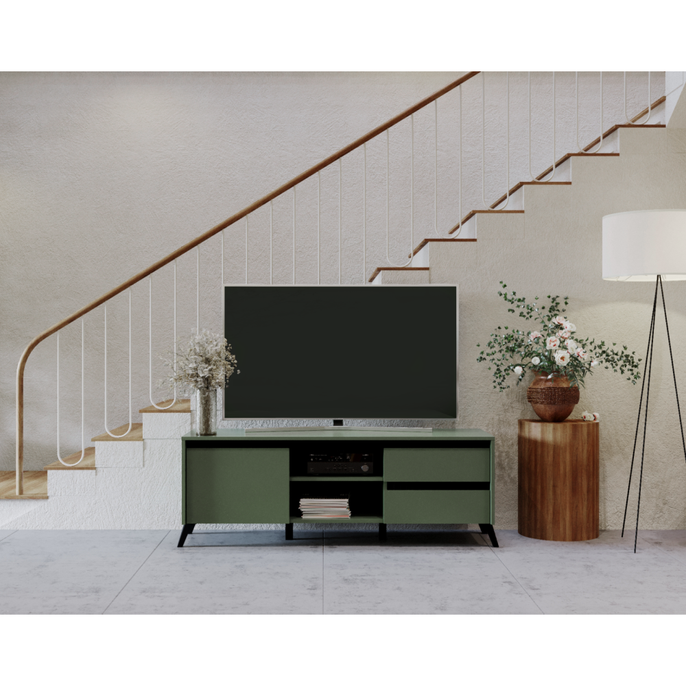 Kondela TV stolík, smoke zelená/čierna, LONGY RTV1K2So