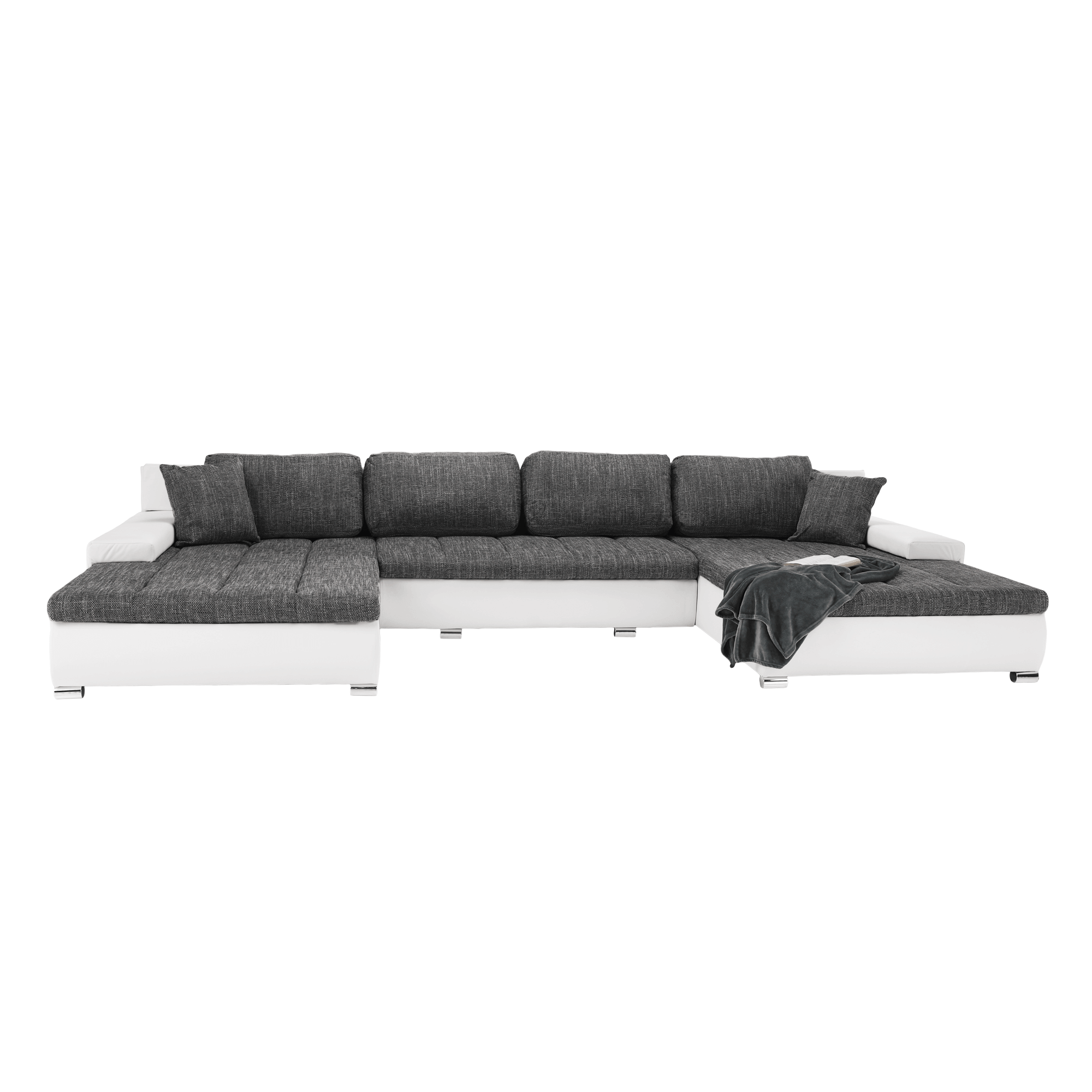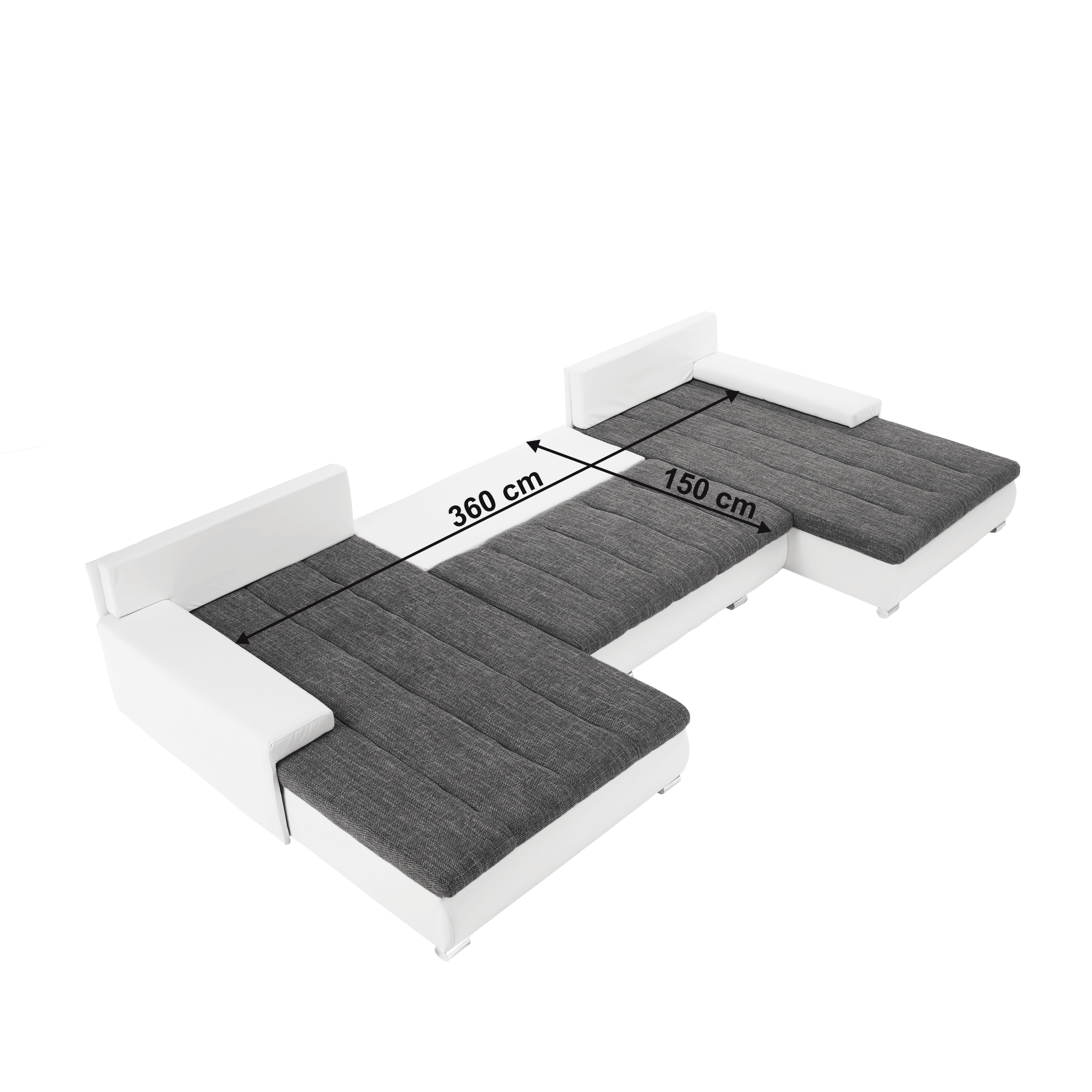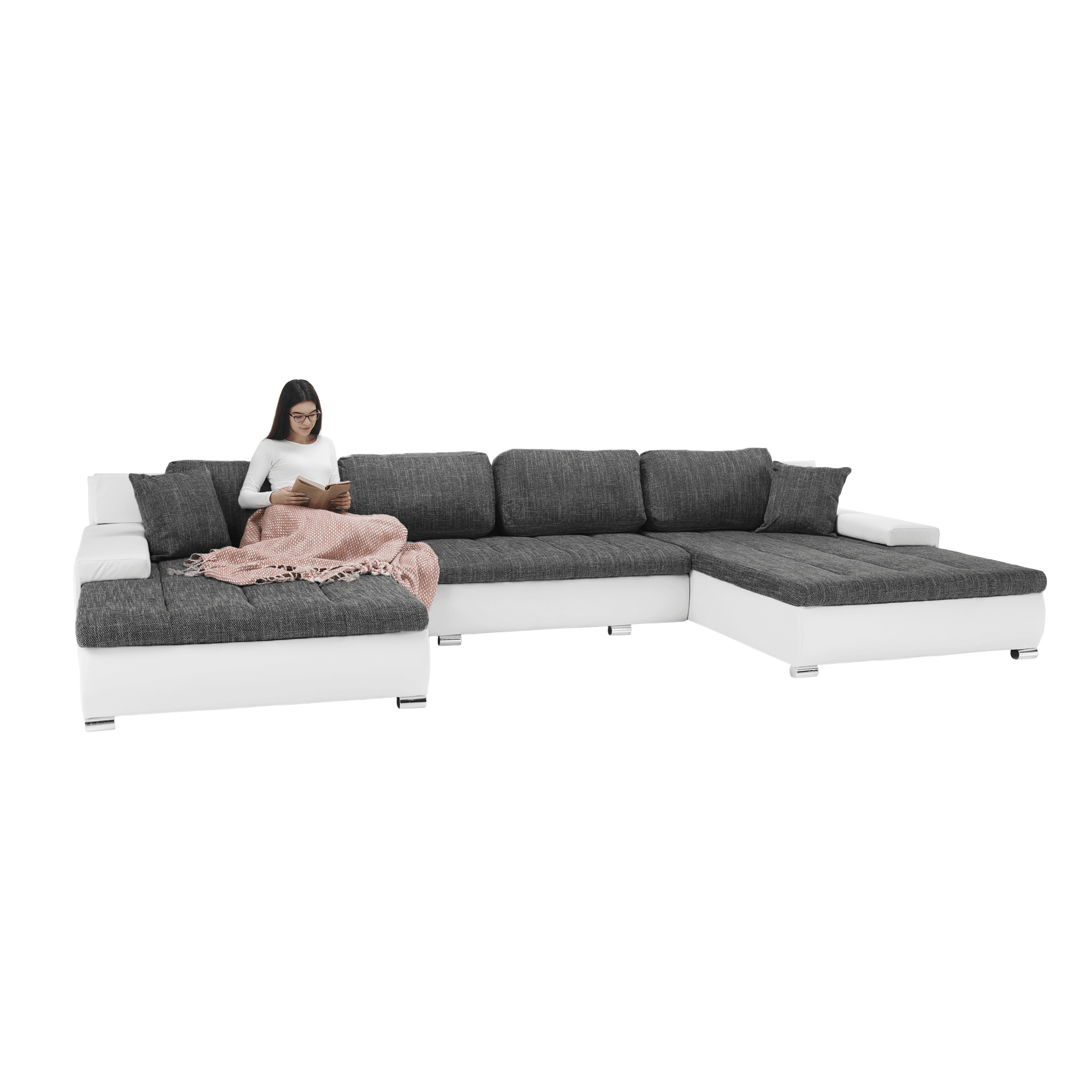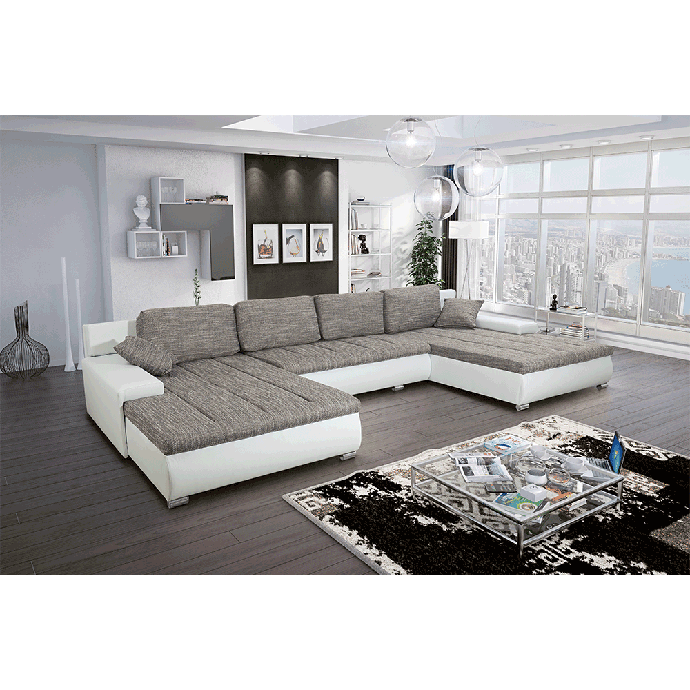 Kondela Univerzálna sedacia súprava, ekokoža biela/látka sivý melír, TONIKS U UNI