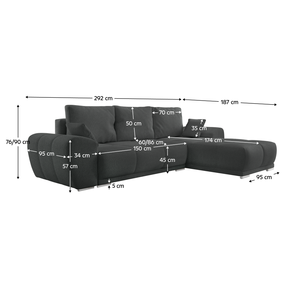 Rozmery (ŠxHxV): 292x187x76/90 cm