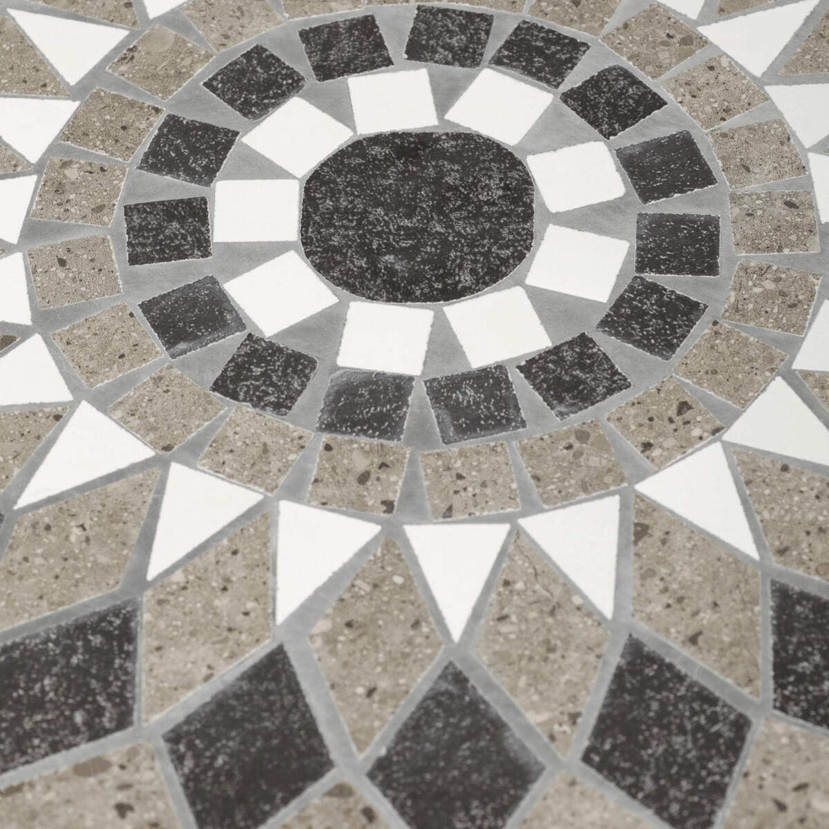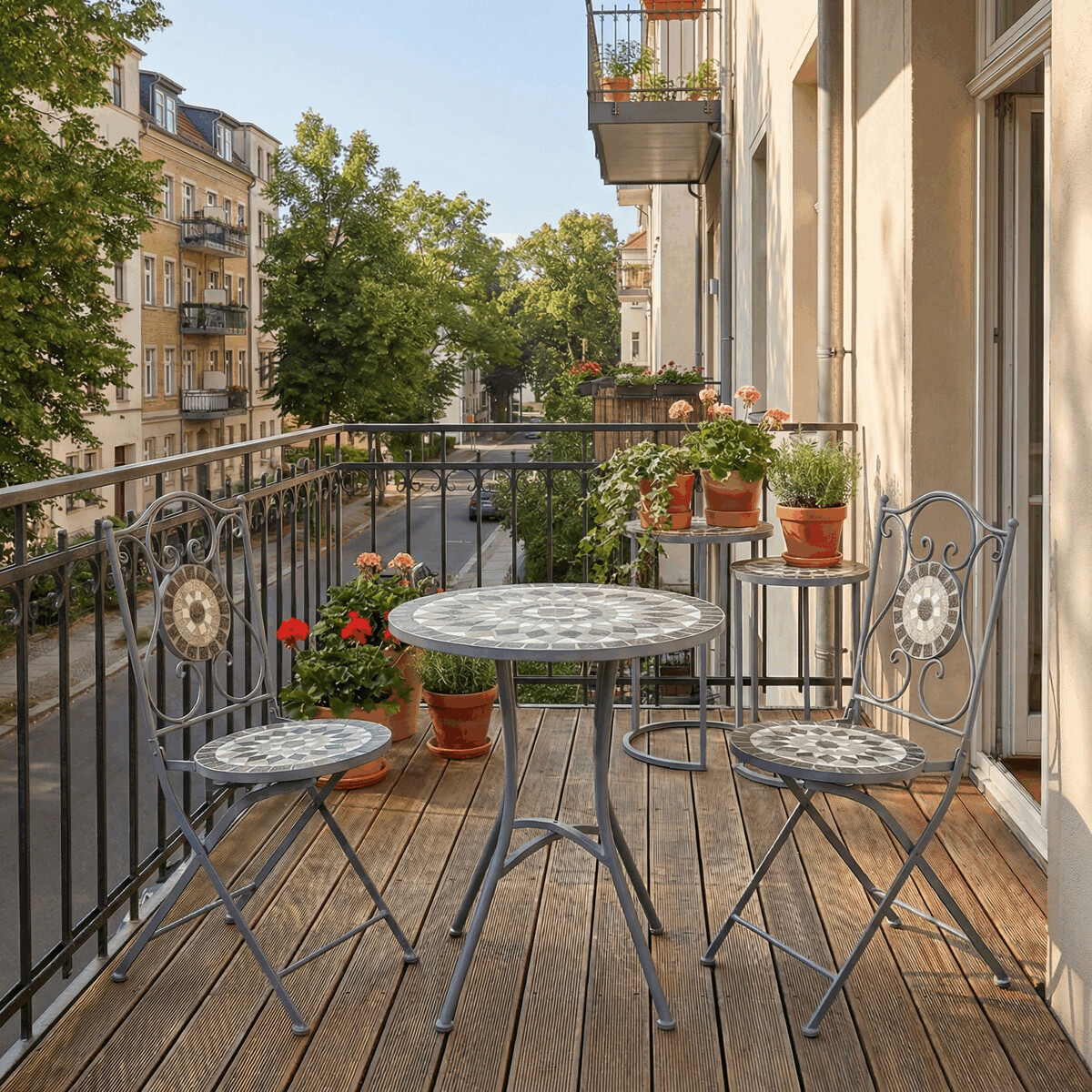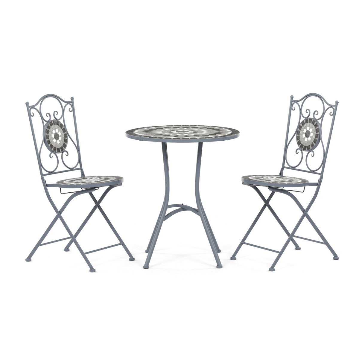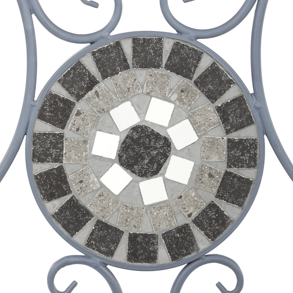 Záhradný set US1500 pozostáva z okrúhleho stola a dvoch stoličiek, ktoré sú vybavené keramickou mozaikou v sivých odtieňoch, vytvárajúc dekoratívny a odolný povrch. Pevná kovová konštrukcia zabezpečuje stabilitu a dlhú životnosť nábytku, zatiaľ čo elegantné krivky operadiel stoličiek dodávajú celému setu ľahkosť a štýl. Keramická doska stola je ľahko udržiavateľná a odolná voči poveternostným vplyvom, čo robí tento set vhodným na vonkajšie použitie na balkónoch či terasách. Vďaka kompaktným rozmerom je ideálny pre menšie vonkajšie priestory, kde ponúka pohodlné posedenie pre dve osoby.