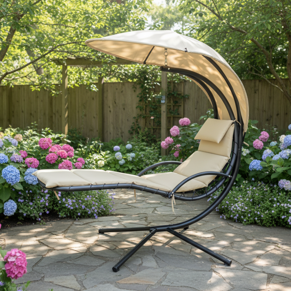 Záhradné hojdacie kreslo, béžová/čierna, SPAVIN 2 NEW