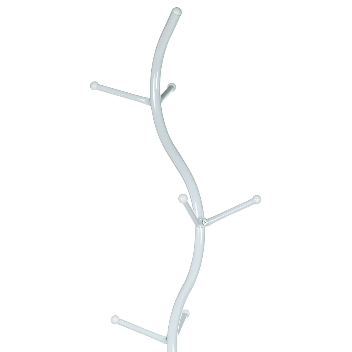 Kovový, voľne stojaci vešiak v minimalistickom dizajne. Tvarom pripomína štylizovanú vetvu stromu. Stabilná a ľahká konštrukcia je z kovových trubiek v bielom matnom laku je zakončená kovovou podestou so záťažou. Závesné háčiky sú v troch výškových úrovniach a sú zakončené okrúhlymi plastovými záslepkami v bielej farbe. Dodávaný je v demontovanom stave, celková nosnosť je 10 kg rovnomerne rozprestretej záťaže. Vďaka svojej hmotnosti a prevedeniu je ľahko prenosný. Jedná sa o originálny doplnok interiéru, v každom si nájde zaslúžené a funkčné miesto a uplatnenie.