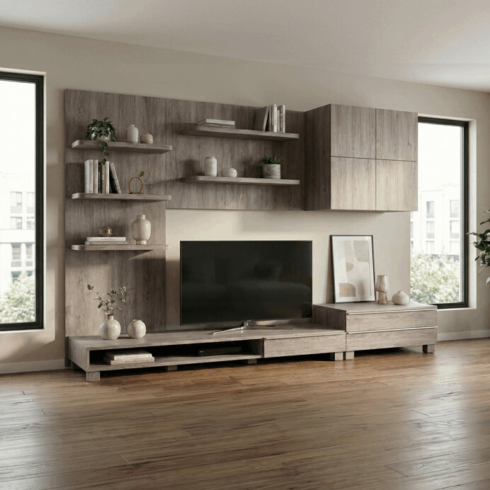 Obývacia stena 300x59x210cm, mdf, hnedá, 9HQ08